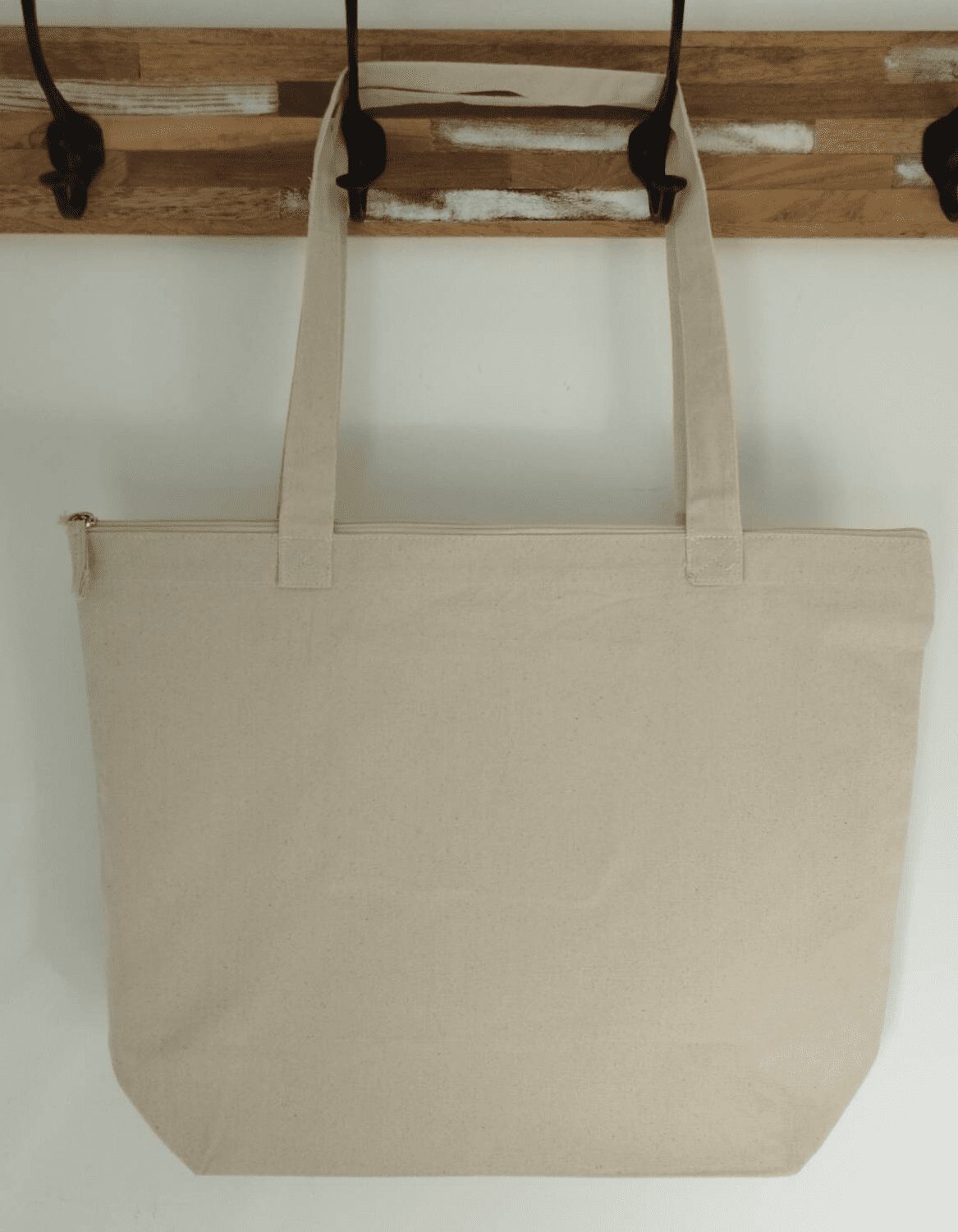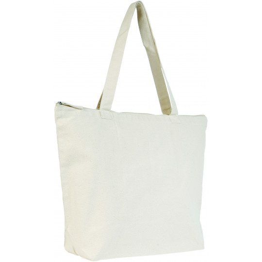 Sac de grande taille à fermeture éclair et poche intérieure en coton : Dimensions : 51 x 38 + 15 cm – Anses en coton de 70 cm – poche intérieure 17 x 18 cm. 100% coton (280 g/m²).