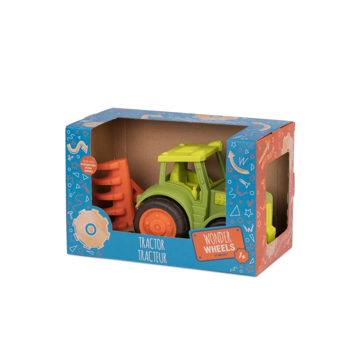 Ce grand tracteur vert avec sa herse attelée est prêt à labourer les rêves des petits fermiers en herbe ! Conçu pour stimuler l’imaginaire et la motricité, il invite les enfants à inventer leurs propres histoires à la campagne, entre récoltes et semailles.