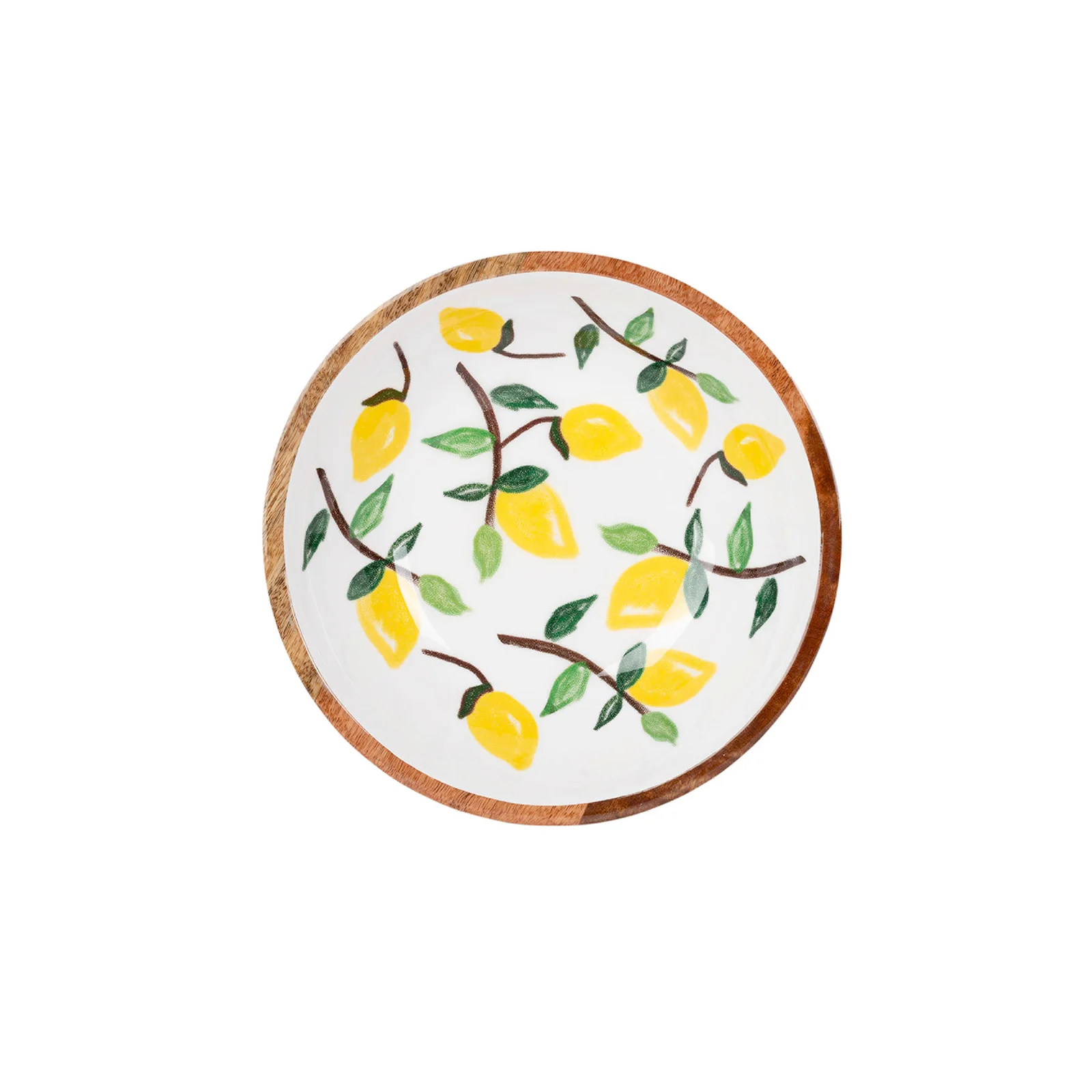 Sublimez votre table avec la Grande Coupelle Medi signée Yliades, un objet décoratif aussi pratique que captivant. Alliant la chaleur du bois naturel et la fraîcheur d’un décor citronné, cette pièce de 28 cm de diamètre célèbre l’art de vivre au soleil. Elle attire tous les regards grâce à son contraste unique entre l’extérieur en bois d’acacia et l’intérieur en céramique peinte à la main, orné de citrons jaunes lumineux et de feuillage vert vif.