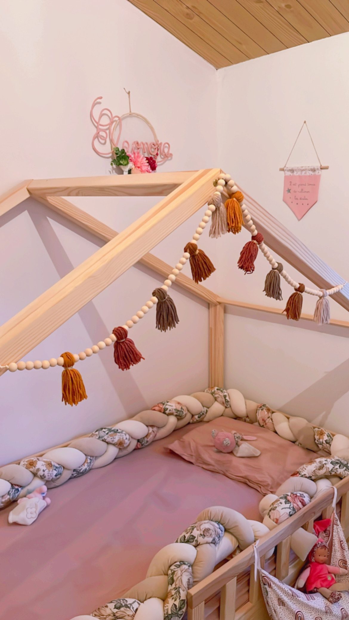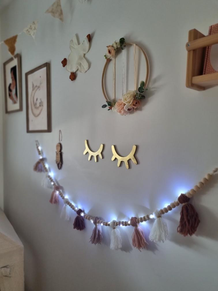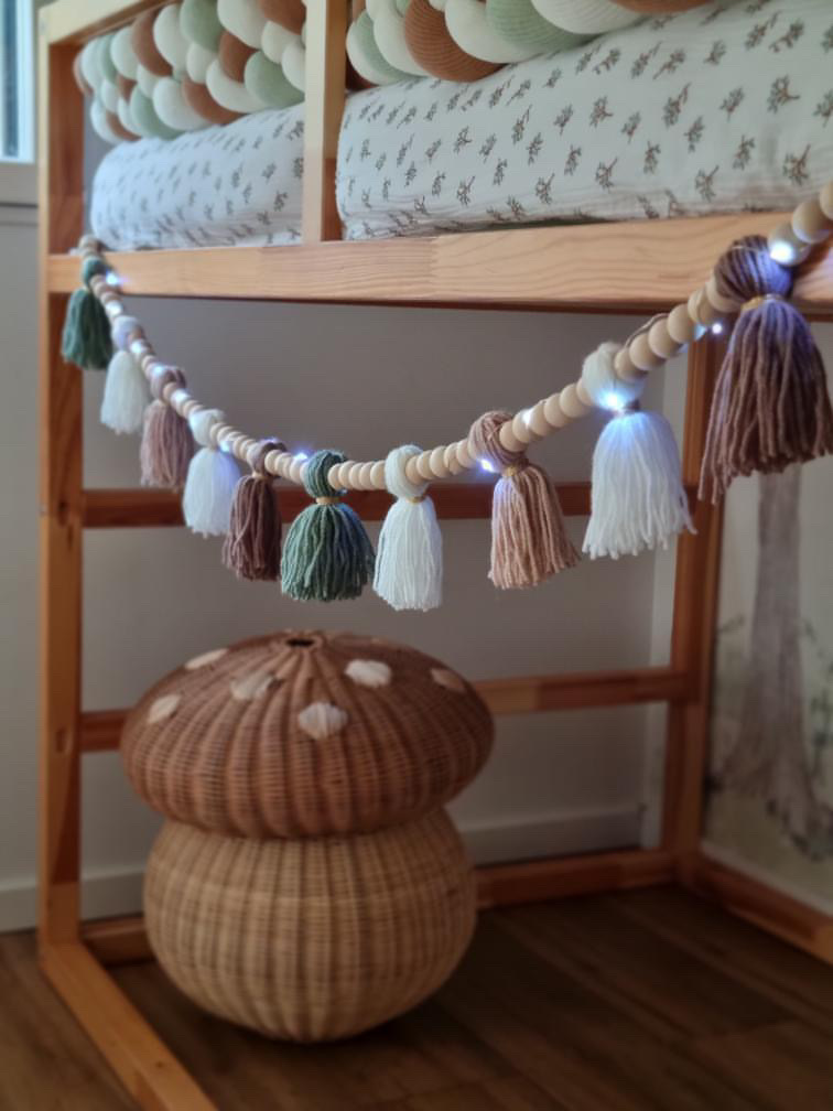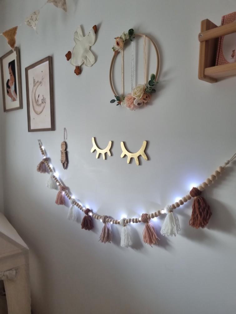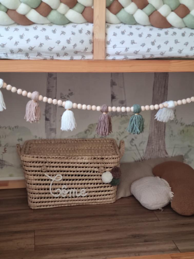 Grande guirlande de perles et pompons à personnaliser Grande guirlande en perles bois, laine et corde. Se compose de 10 pompons. Idéal pour la décoration d’une chambre d’enfant ou une salle de jeu. A accrocher sur un mur. Dimensions +/- 130 cm de long Article fait main qui peut présenter quelques variantes et irrégularités au […]