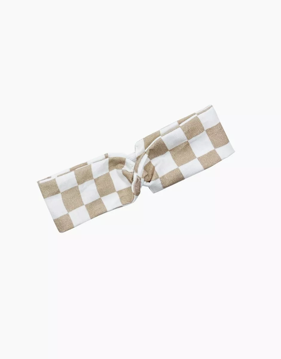 Headband croisé Andrée à damier beige et blanc