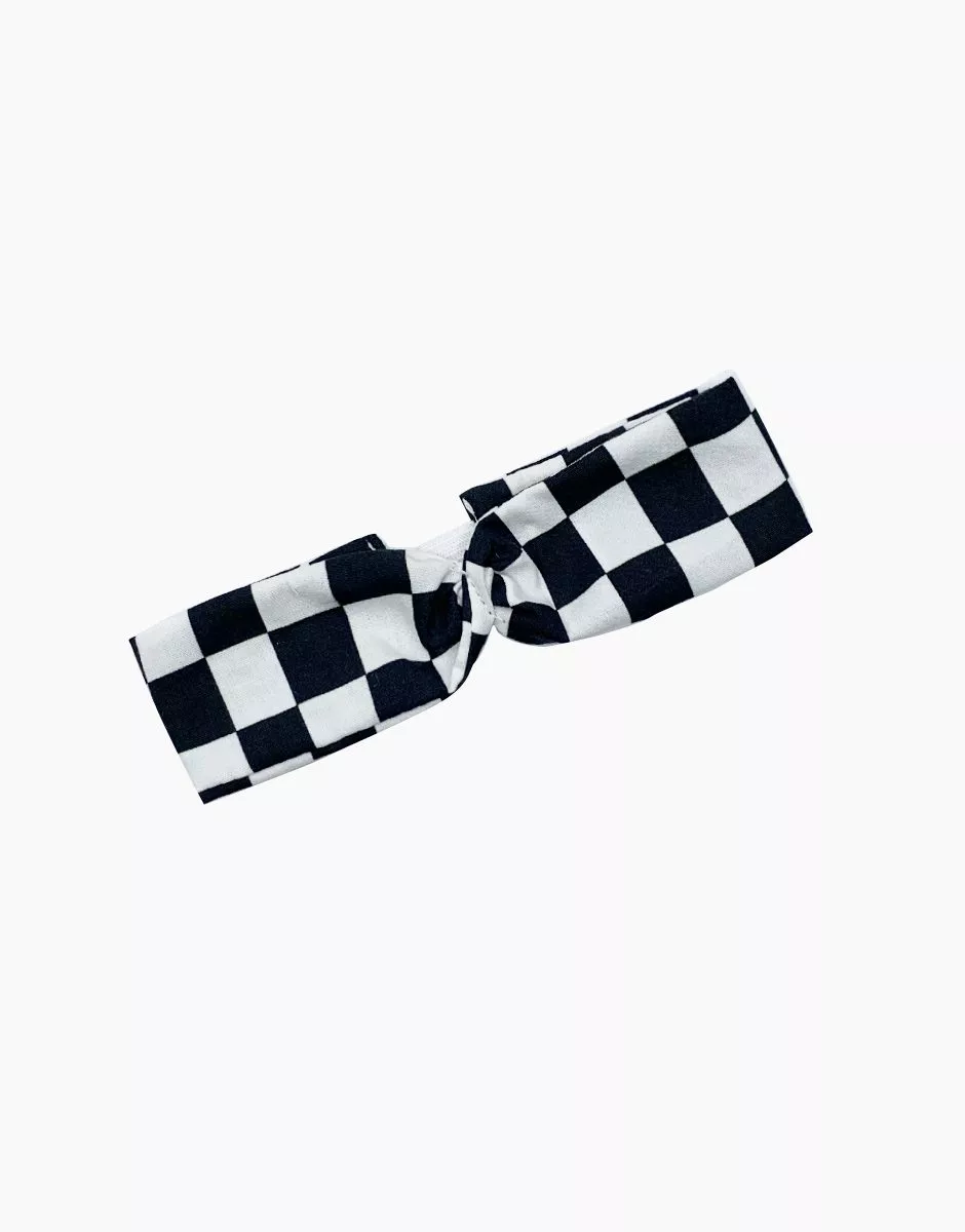 Collection Minikane X Delage – Headband croisé Andrée à damier noir et blanc pour poupées Gordis 34 & 37cm. Design, développement & confection made in France. Design, development & tailoring made in France.