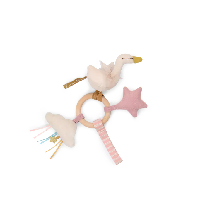 Hochet 2 en 1, à la fois un doux cygne à câliner et un jouet d’activité pour bébé!