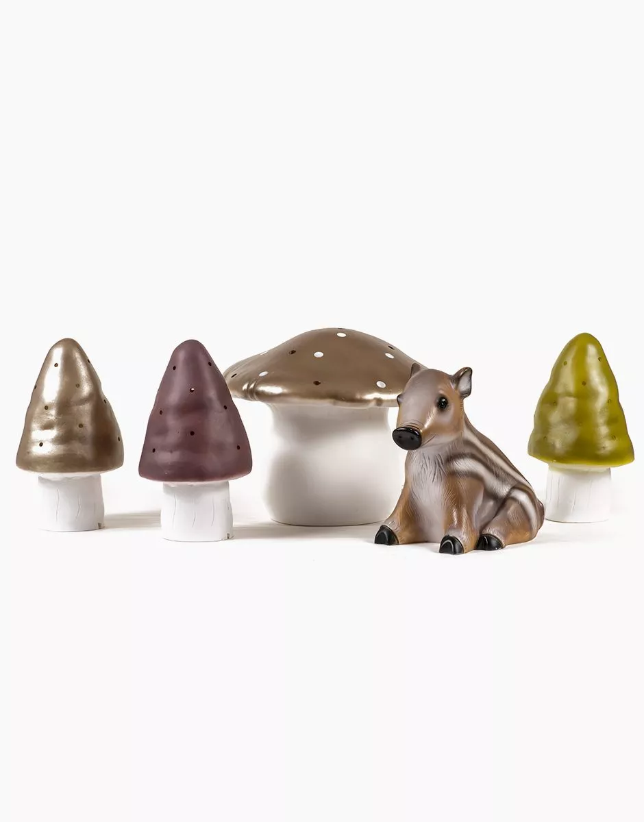 Home kids – La collection Meubles & Décoration pour enfants par Minikane Petite lampe de table à LED 1,5 Watt en forme de champignon, câble électrique détachable Dimensions : Largeur 16 cm x Longueur 16 cm x Hauteur 26 cm. Longueur du cable électrique : 115 cm. Fabriquée en Allemagne « Little mushroom » table lamp, sold with detachable power cable Dimensions : 16 x 16 x 26 cm Design & Manufacturing : Made in Germany.