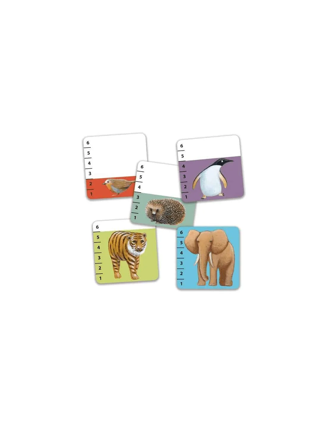 Chaque joueur retourne une carte. L’animal le plus grand remporte le tour ! En cas d’égalité ? C’est la bataille : on pose deux cartes face cachée, puis on en retourne une nouvelle. Le gagnant rafle tout ! Ludique, rapide et amusant, ce jeu permet aux plus jeunes de développer leur sens de l’observation, leur comparaison visuelle et leur réflexe logique, tout en partageant un moment convivial en famille.