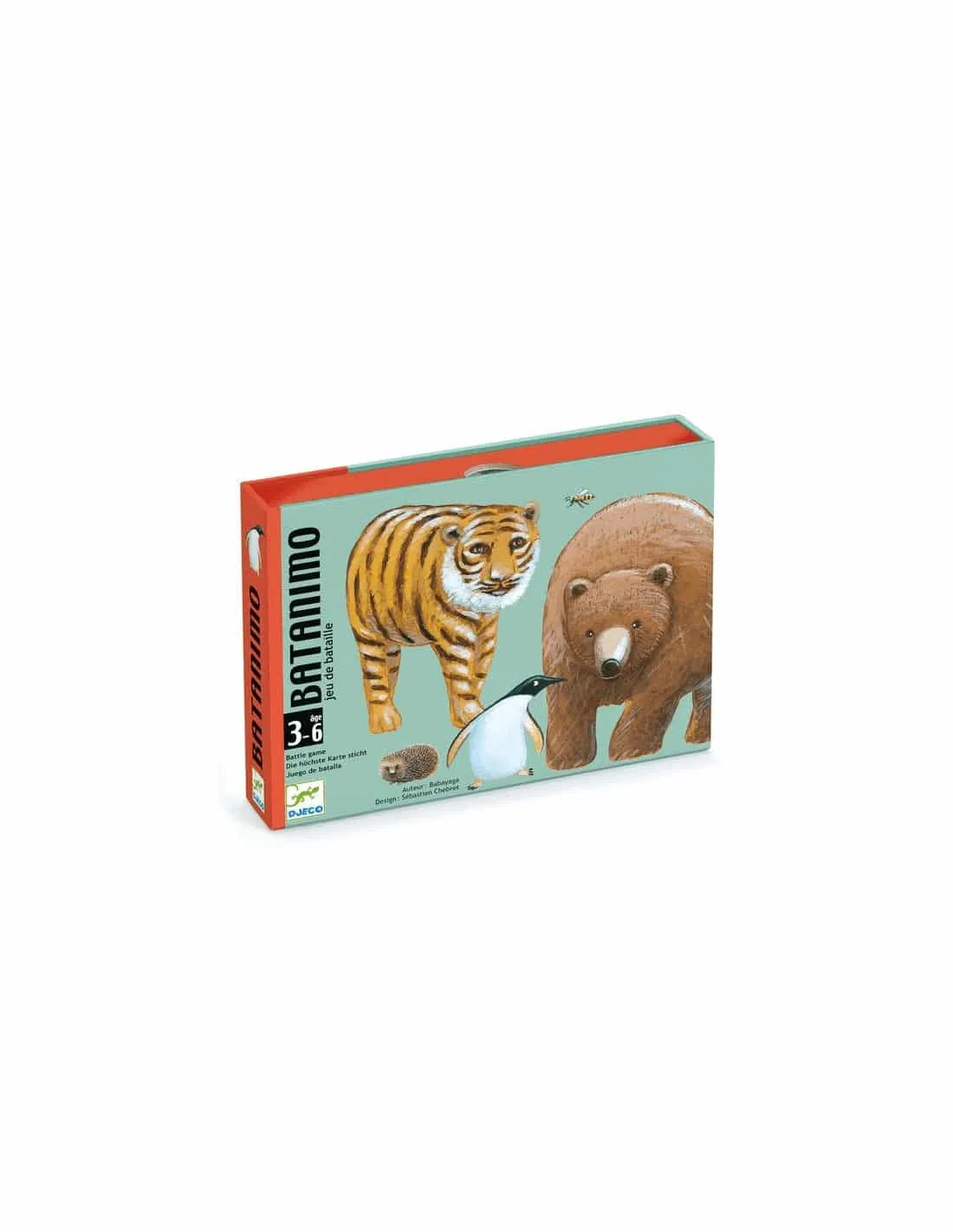 🐯 Qui de l’éléphant ou du chat remportera le pli ? Avec Batanimo, Djeco revisite le célèbre jeu de bataille en l’adaptant aux plus petits, dès 3 ans. Plus besoin de savoir lire les chiffres : les enfants comparent la taille des animaux sur les cartes pour savoir qui gagne !