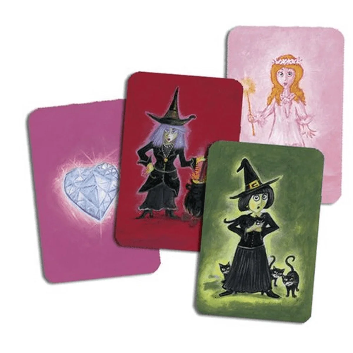 Inspiré du principe du stop ou encore, ce jeu apprend aux enfants à prendre des risques… ou à les éviter, à chaque tour. Une sorcière apparaît ? Il faut une carte « fée » pour annuler le mauvais sort, sinon c’est 3 cartes ou diamants perdus ! Les enfants développent ainsi leur réflexion, stratégie et sens de l’anticipation, tout en s’amusant avec des illustrations magiques et colorées.