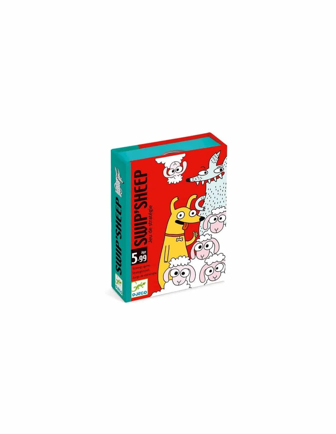 Jeu de Cartes Swip’Sheep, Djeco. Âge:5 à 99 ans Un jeu de stratégie à 3-5 joueurs où il faut contrer les attaques de loups et sauver ses moutons. Les loups attaquent, les chiens défendent ; les moutons, eux, rapportent des points. Encore faut-il réussir à conserver ceux que l’on a en main et à piquer ceux des adversaires ! A la fin des manches, celui qui a collecté le plus grand nombre de moutons a gagné. Informations: Toute la stratégie réside dans le choix des cartes que l’on donne à ses adversaires en début de manche ! Des illustrations attachantes…