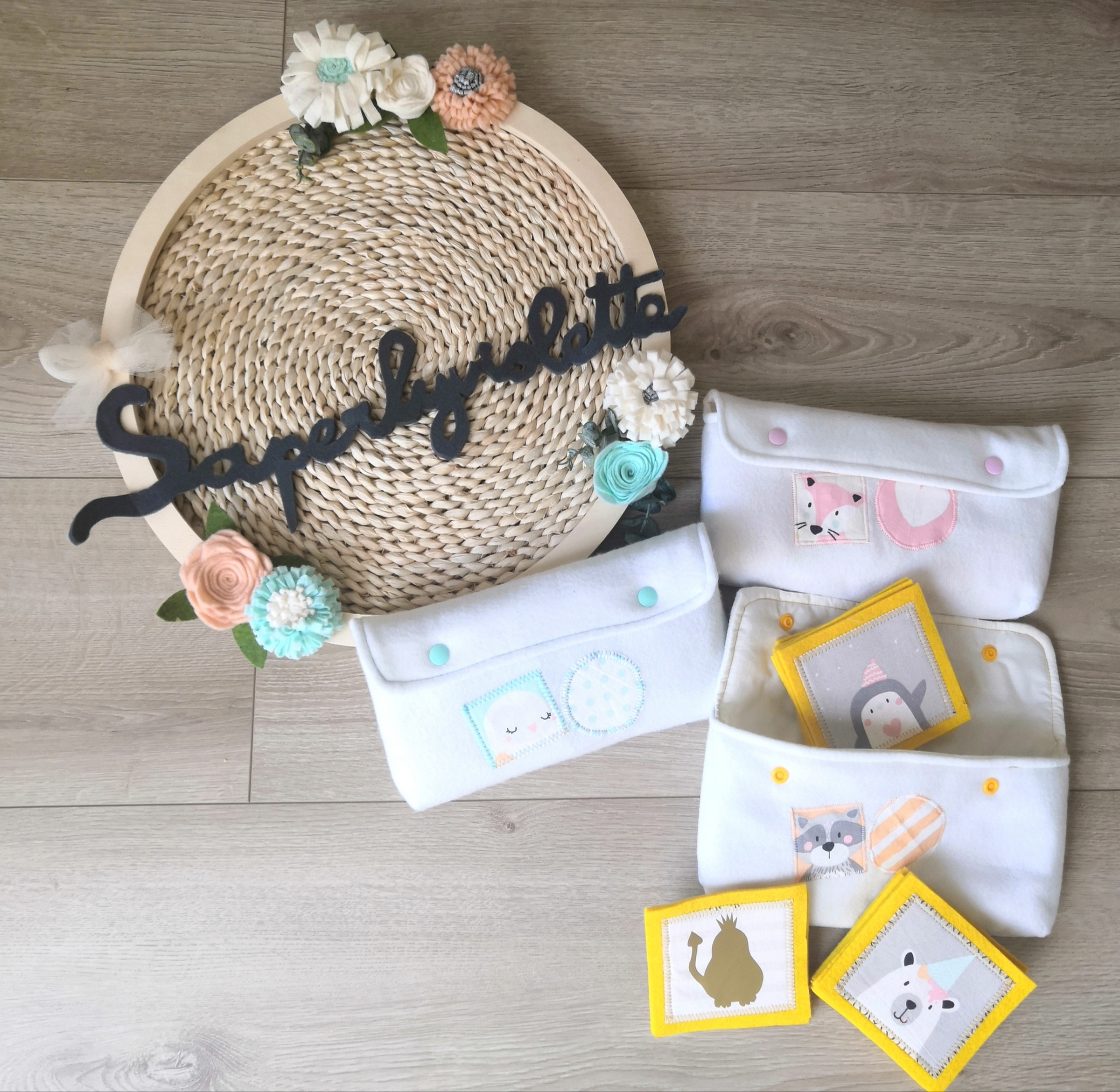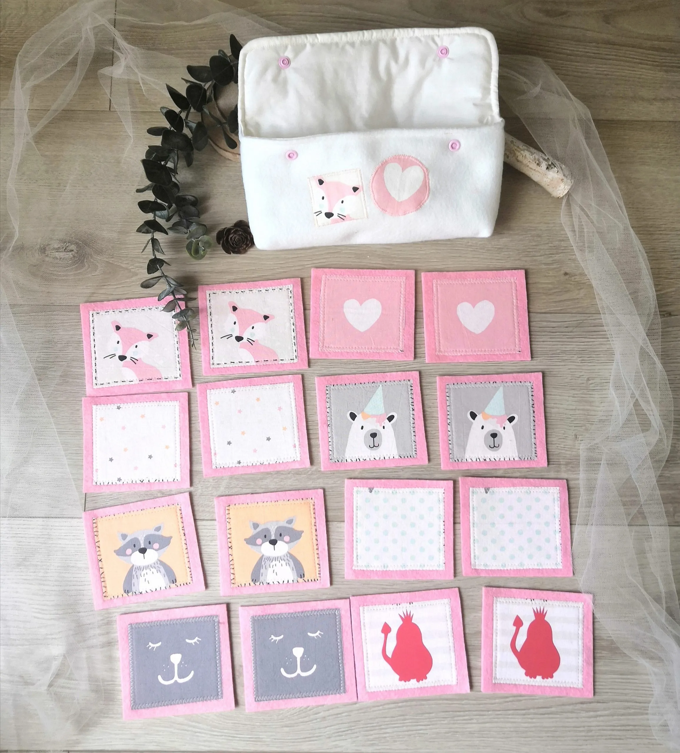 Un joli jeu de mémo et sa pochette de rangement (personnalisable au prénom). Idéal pour faire travailler sa mémoire, découvrir des animaux et couleur, developper son vocabulaire. Idéal entre 2 et 6 ans.