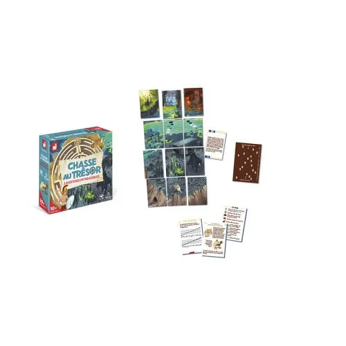 Dans ce jeu de société, on retrouve deux aventures qui durent chacune environ 40 minutes : Orphée et les Enfers et Thésée et le Minotaure. Le jeu se compose de 24 cartes images (12 par chasse au trésor), 6 cartes indices (3 par chasse au trésor), 1 carte de décodage, un livret règles du jeu et un livret indices. Ce jeu de société ludo-éducatif coopératif peut se jouer seul ou se partager jusqu’à 8 joueurs. Attention, jeu uniquement en français.