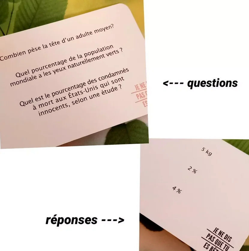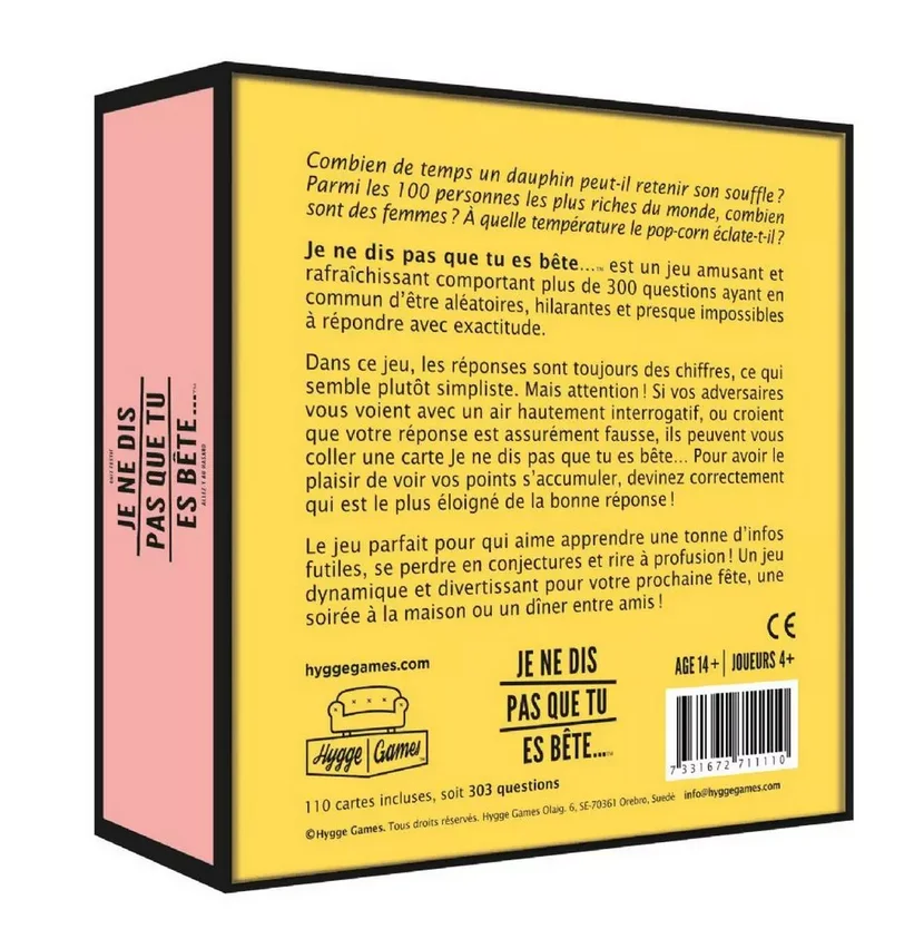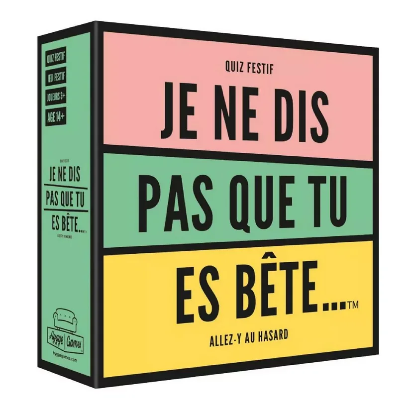 Que ce soit pour briser la glace, animer une soirĂ©e ou simplement passer un bon moment, ce jeu Je ne dis pas que tu es bĂȘteâŠ, Hygge Games garantit des Ă©clats de rire et des souvenirs impĂ©rissables. Alors, prĂȘts Ă dĂ©couvrir qui est le plus malin de la bande ?