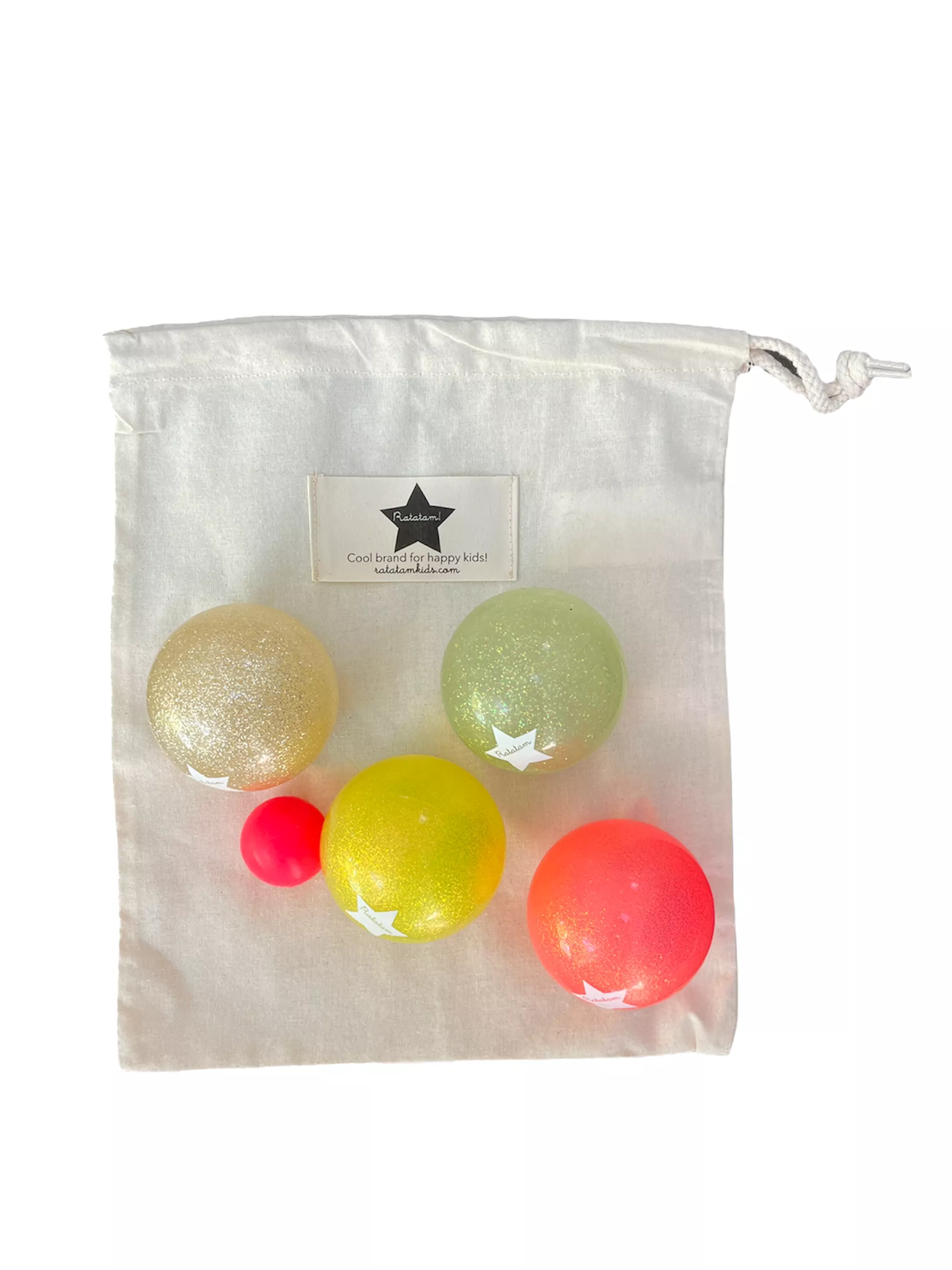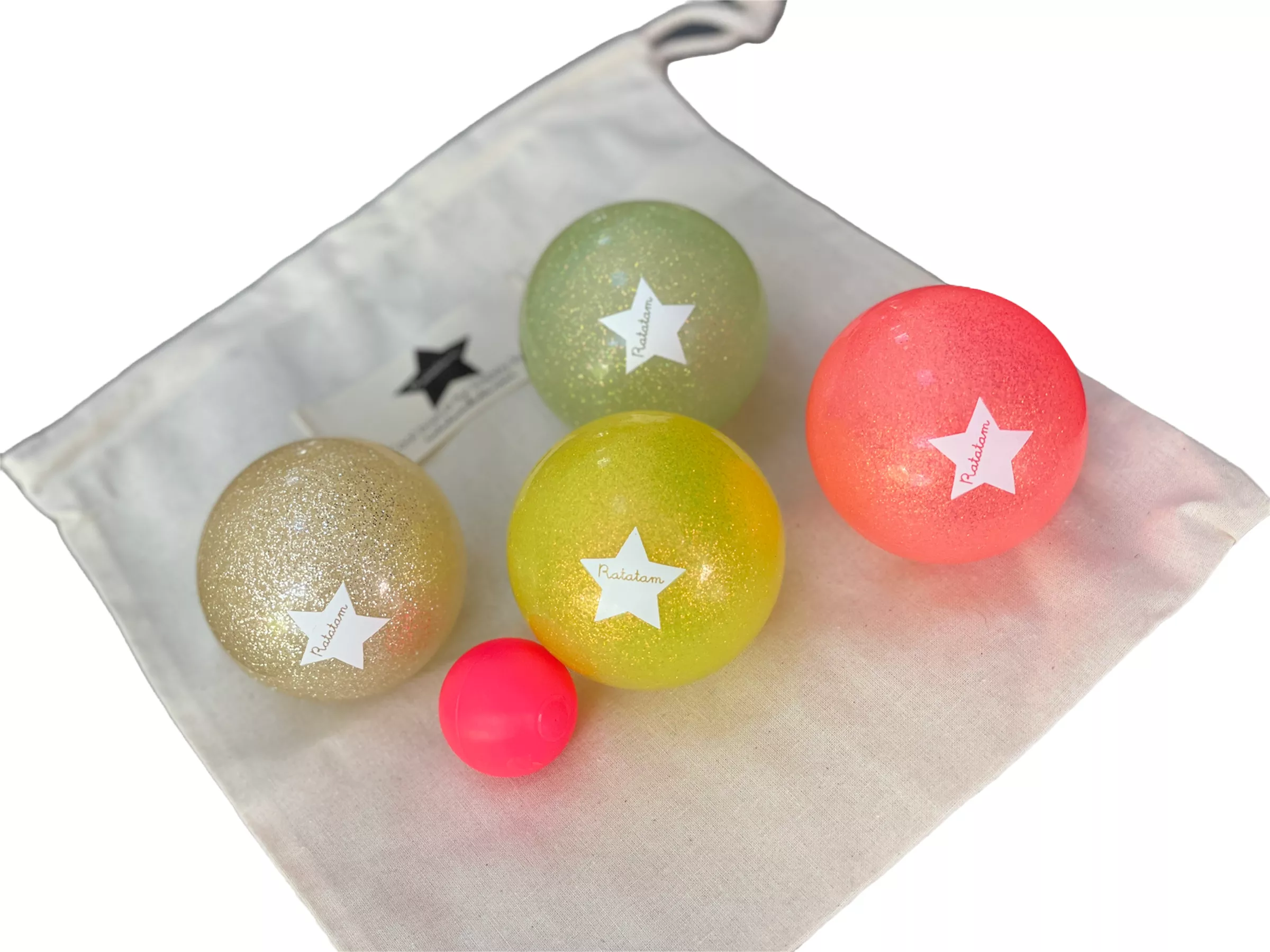 Le jeu de boules/pétanques est composé de 4 balles pailletées multicolores + un cochonnet rose fluo. Livré dans son packaging en kraft maman poule avec en prime, un petit pochon en coton pour pouvoir emmener son jeu de boules où l’on veut !