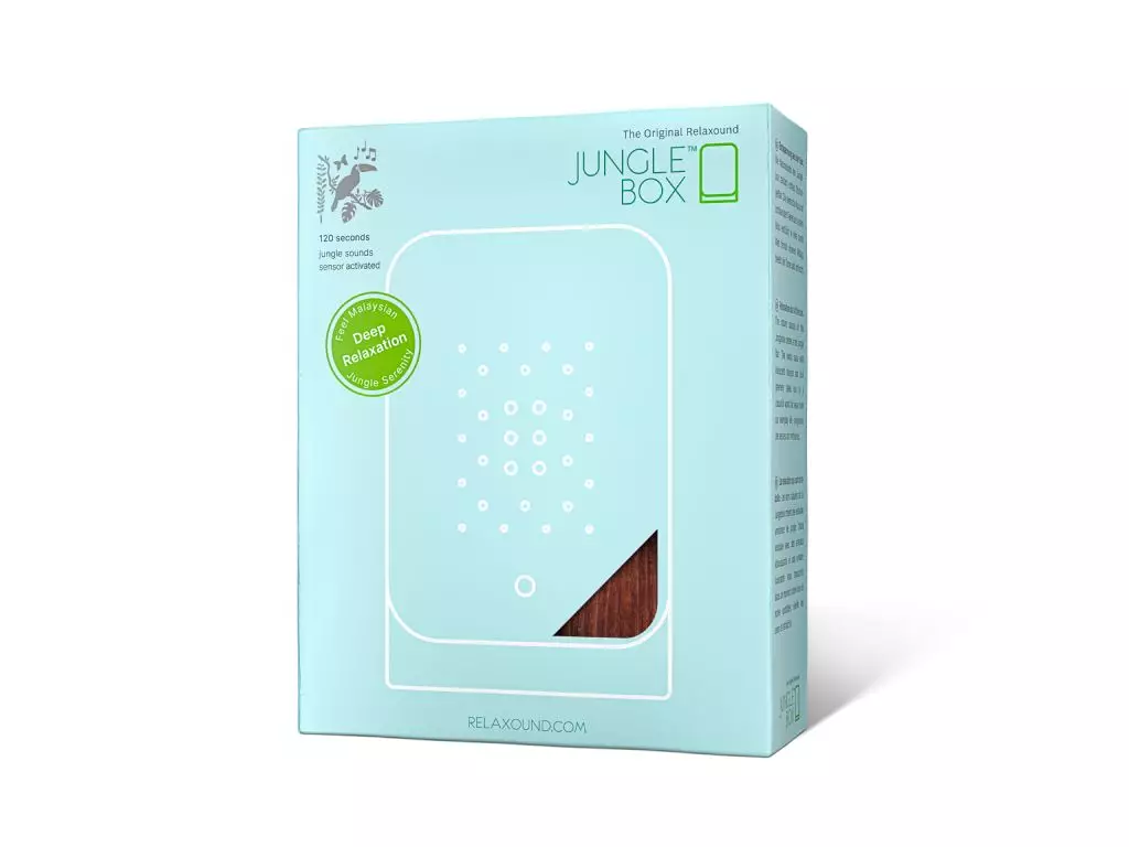 Junglebox Teck, Relaxsound. La Relaxound Junglebox apporte de la vivacité dans votre vie, à tout moment. Avec une ambiance jungle captivante de 120 secondes, elle vous invite à l’émerveillement, vous revigore et fait naître une joie de vivre intense.