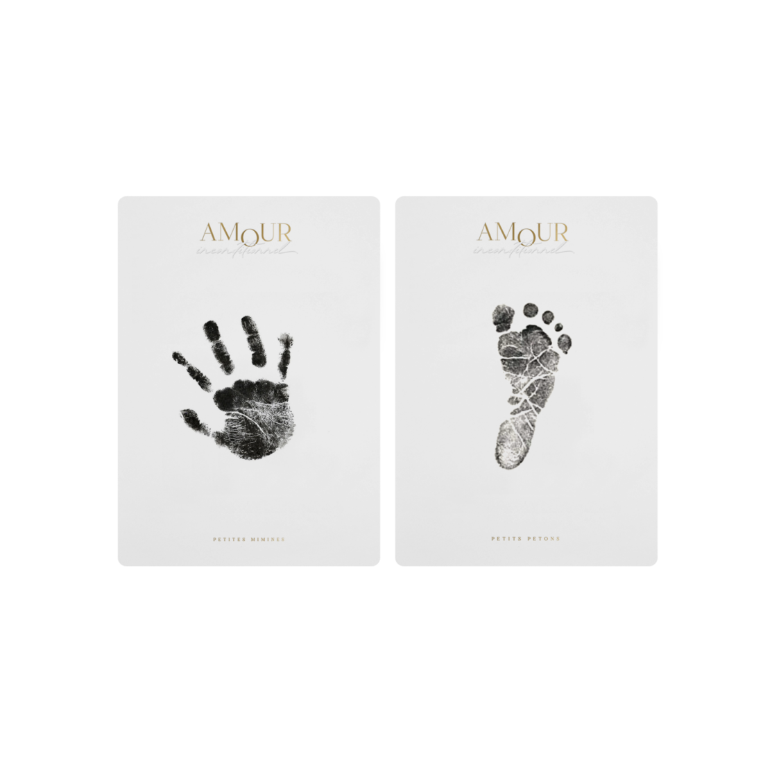 Conservez précieusement les empreintes des pieds et des mains de bébé grâce à ce kit comprenant 2 cartes au format A5 ainsi qu’un encreur « sans contact » qui garantit une impression détaillée, sans que la peau de votre enfant ne soit en contact direct avec l’encre.