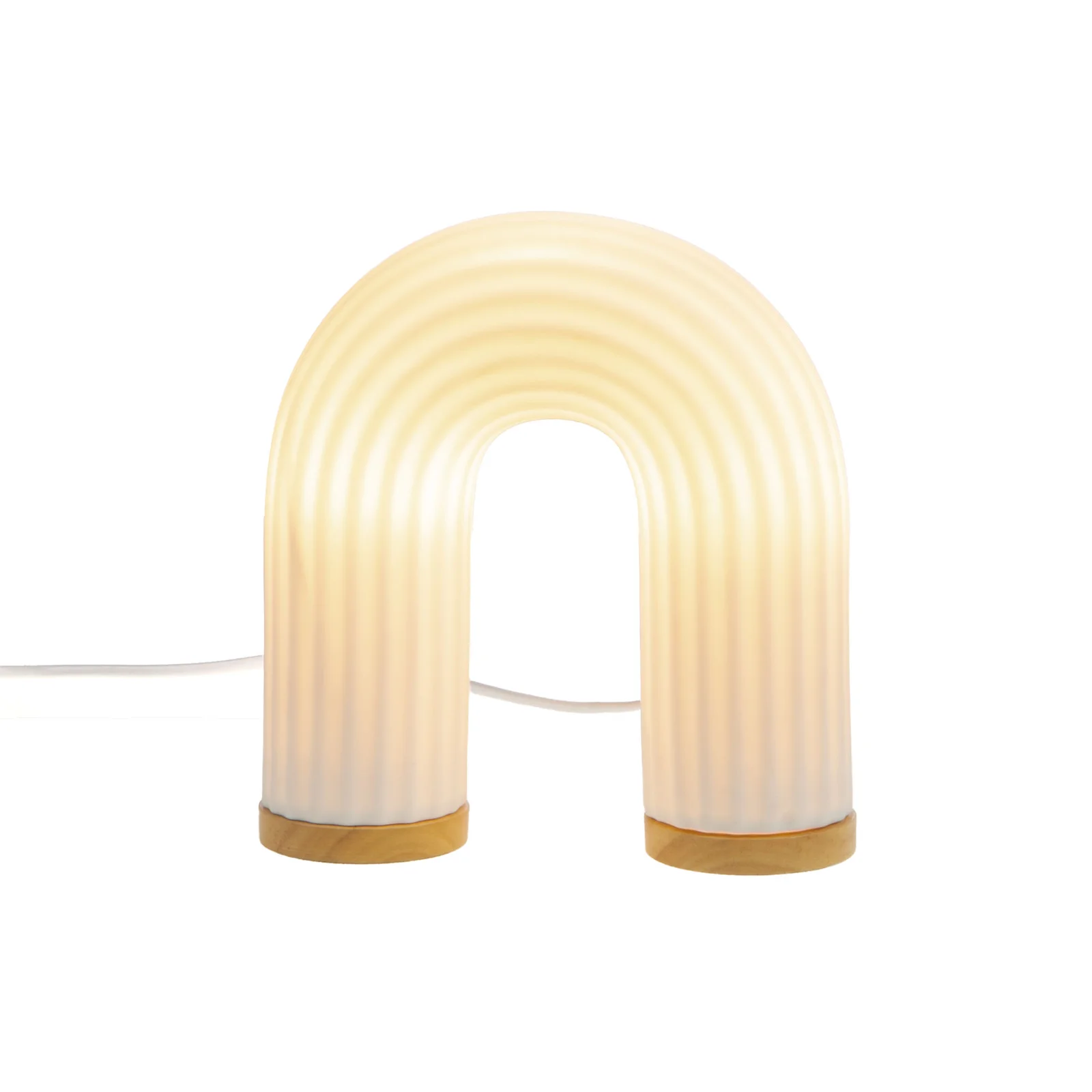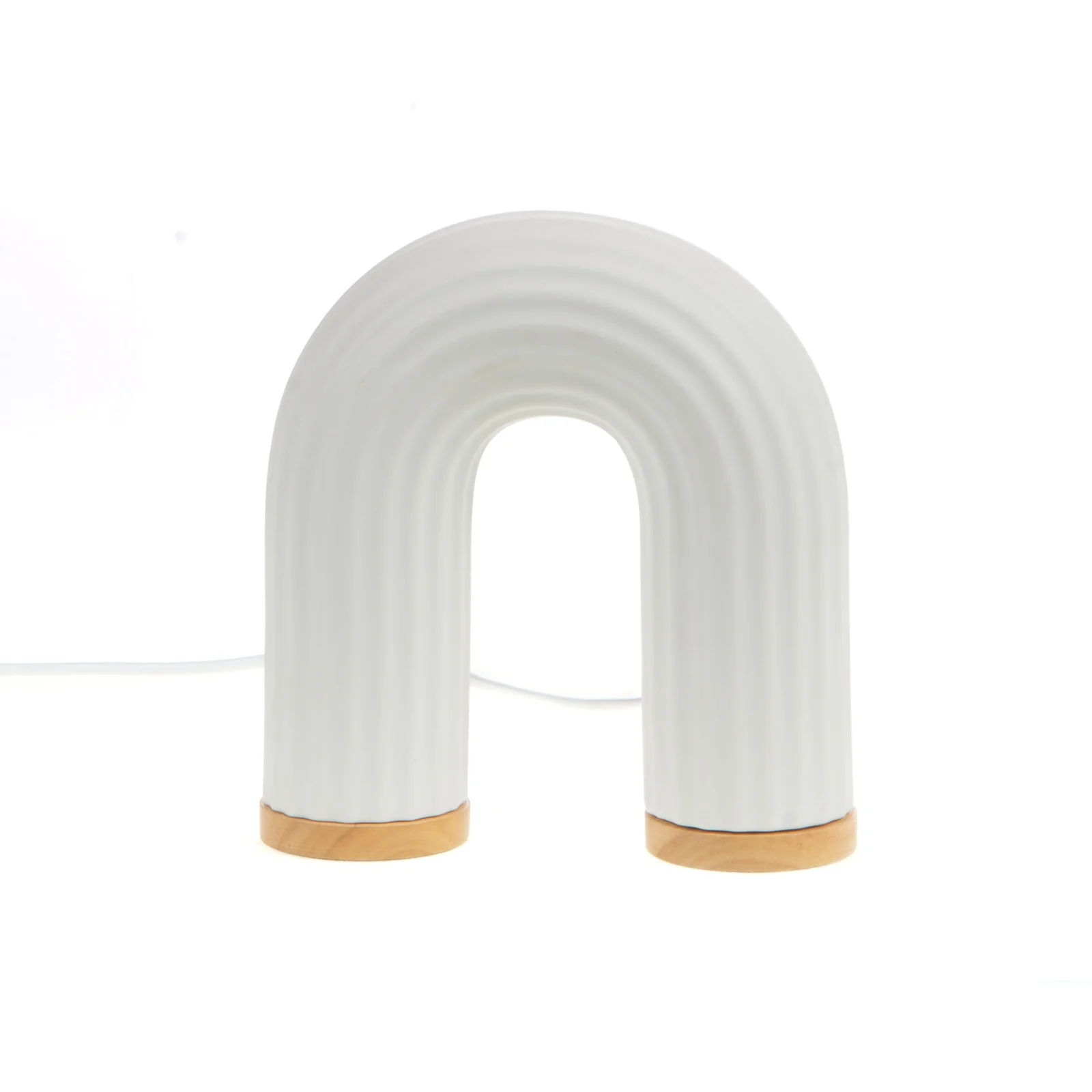 Lampe Achille en Porcelaine, Cades design. La lampe Achille en porcelaine, en forme d’arc avec un support en bois, est un luminaire alliant élégance et simplicité. Son design unique lui confère une silhouette moderne et épurée, parfaite pour s’intégrer dans différents styles d’intérieur, qu’ils soient contemporains ou plus classiques.