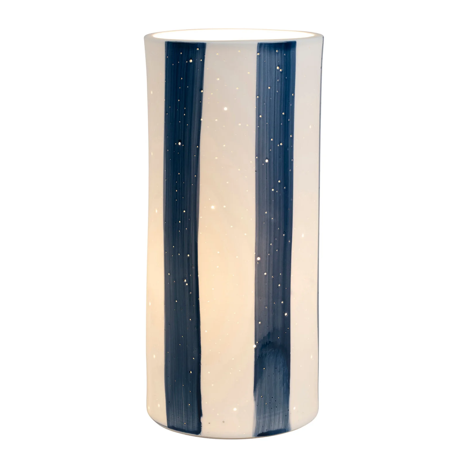 Apportez une touche de caractère et de poésie à votre intérieur avec la lampe Alaria Indigo signée Yliades. Inspirée par les ambiances marines et artisanales, cette lampe tube en céramique percée dévoile, une fois allumée, un jeu de lumière délicat à travers ses fines perforations et ses rayures indigo peintes à la main. Son design élégant et vertical (H28 cm) en fait une pièce forte, tout en subtilité.