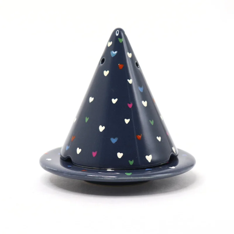 Matière : Céramique Emaillée – Couleur : Bleu Marine avec des petits coeurs multicolore