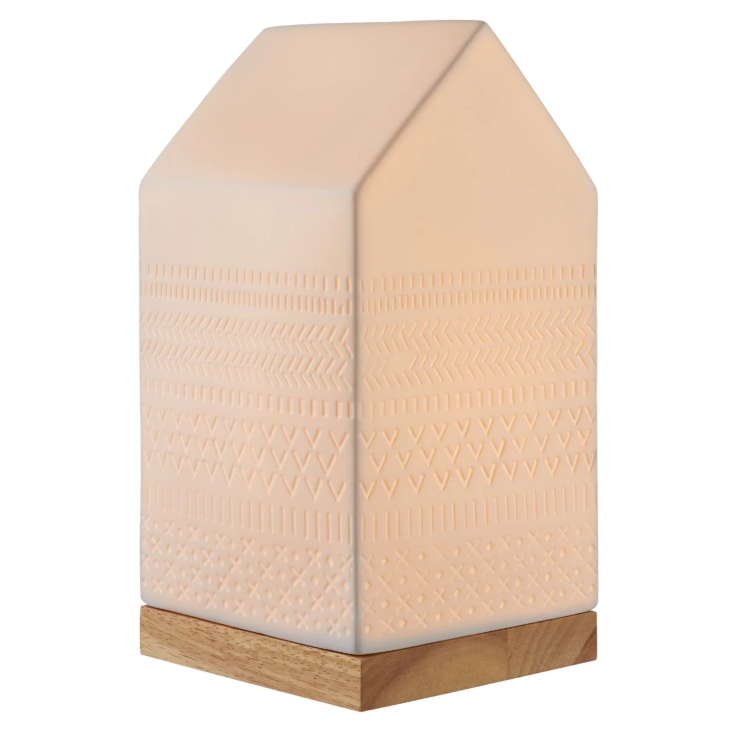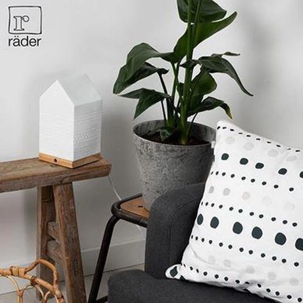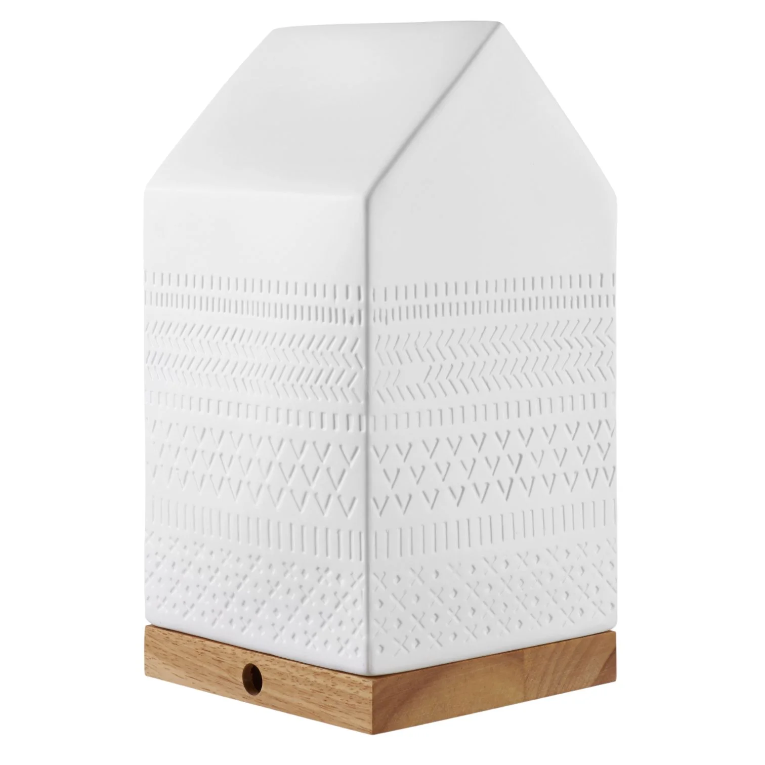 Lampe Porcelaine et Bois Maison, Räder . Cette délicate lampe en porcelaine blanche est parfaite pour instaurer une atmosphère tamisée et créer une ambiance douce et poétique. Son design en forme de « Maison » et la décoration en relief d’un arbre tout autour, avec de charmantes silhouettes d’oiseaux apparaissant en ombres chinoises lorsque la lampe est allumée. Polyvalente, elle s’intégrera harmonieusement dans le salon, l’entrée ou une chambre d’enfant.