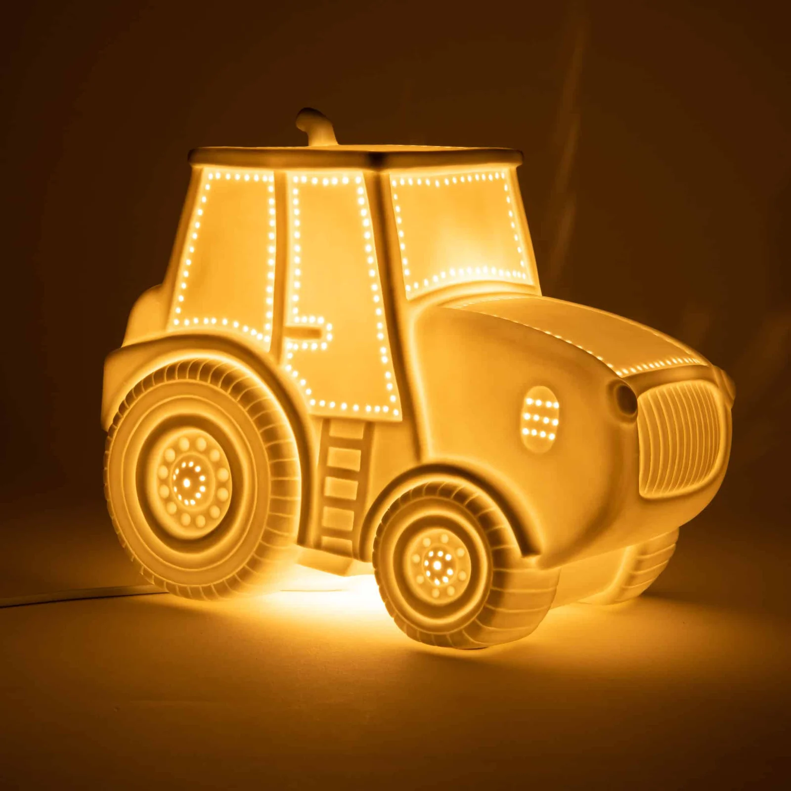 Lampe Tracteur Porcelaine. Pour les petits amoureux du monde rural, des tracteurs, de la ferme… Ils vont trouver un charmant compagnon pour s’endormir en rêvant.