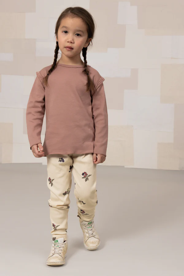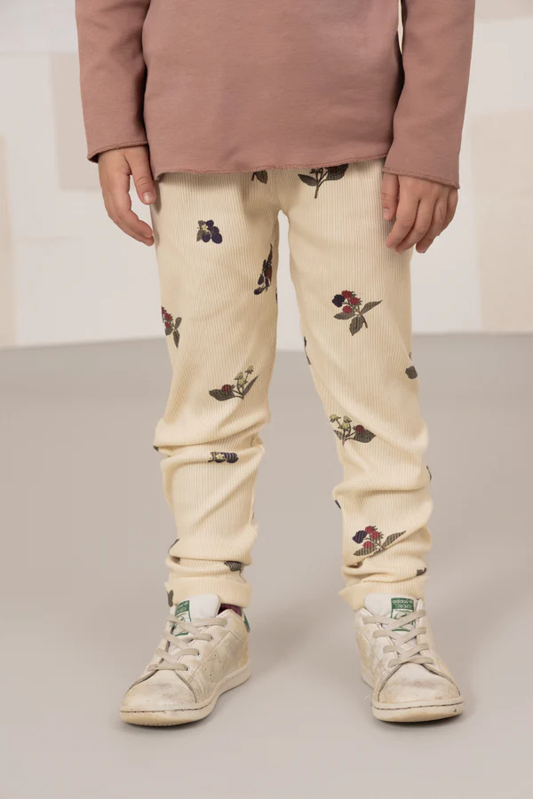 Legging enfant Rom Pom Studio Bohème écru motif mûres – Legging mixte en coton bio côtelé