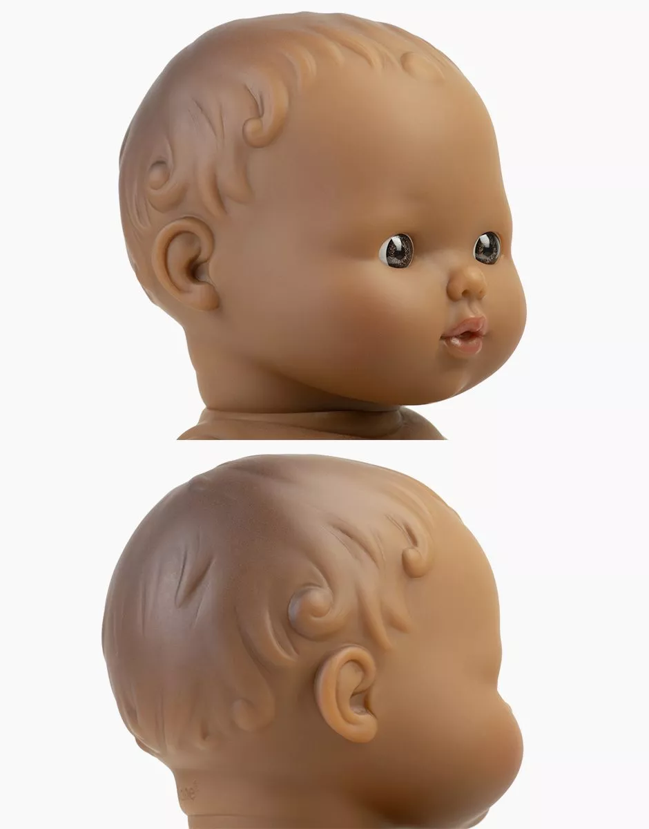 Léon, poupon Minikane Gordis Vintage style annnées 60, vendu sans culotte. – 34cm – Sans cheveux – Yeux marrons Poupée en vinyle parfumé à la vanille. Compatible avec l’ensemble des vêtements et accessoires Gordis.