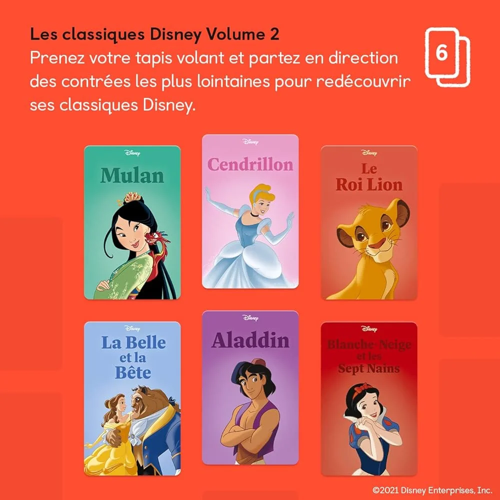 - Format : 6 cartes audio Disney pour Yoto