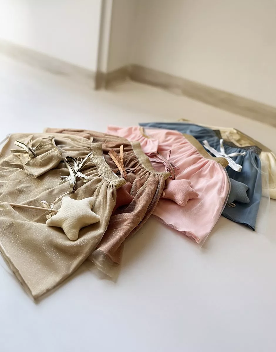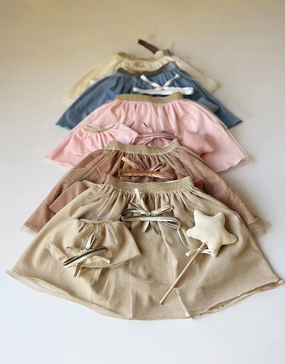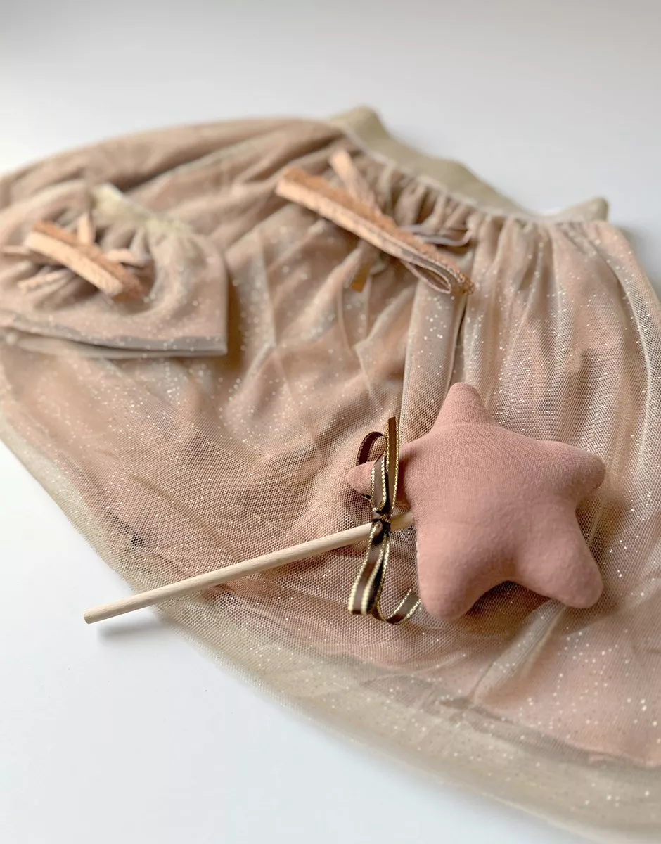 Les P’tits Déguiz – Duo de tutus Deva enfant/poupée et sa baguette magique avec étoile en tissu cassonade