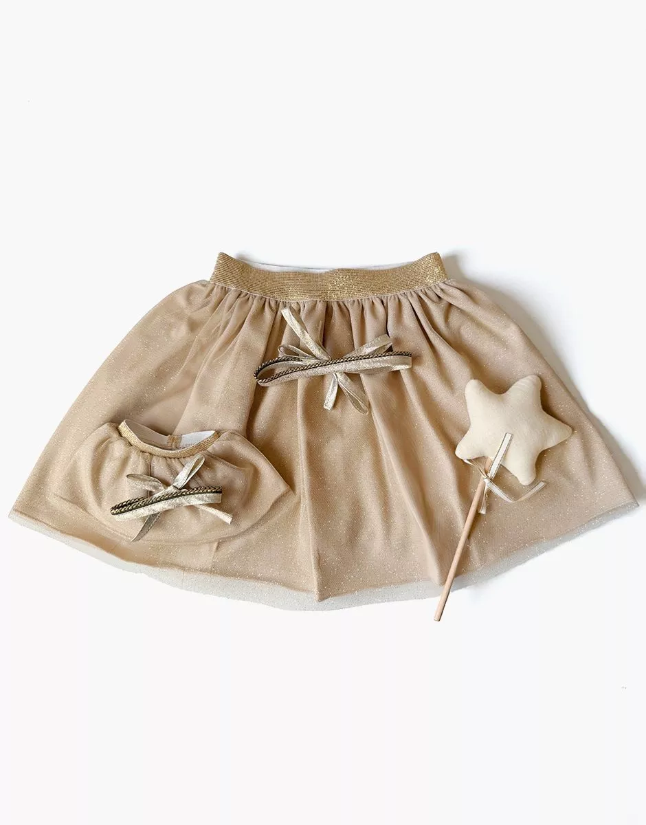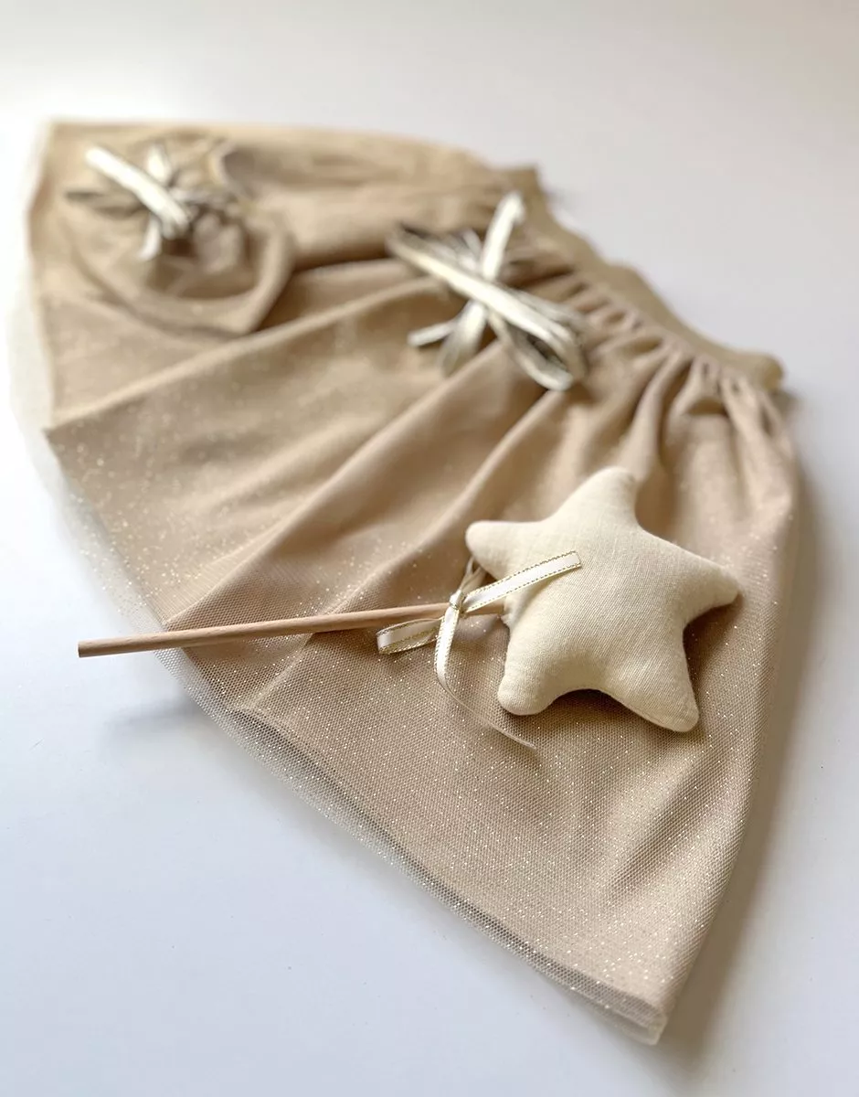Les P’tits Déguiz – Duo de tutus Deva enfant/poupée et sa baguette magique avec étoile en tissu lin