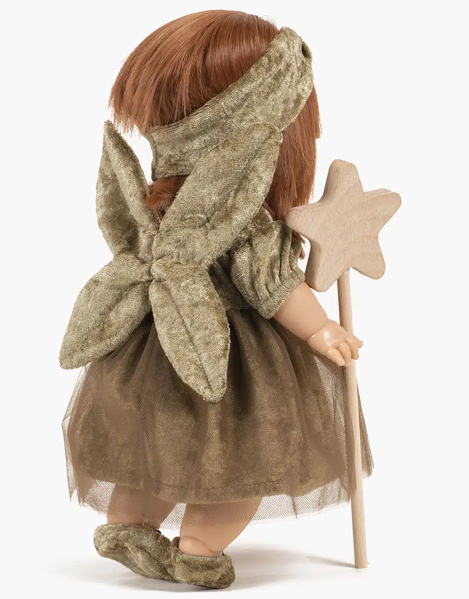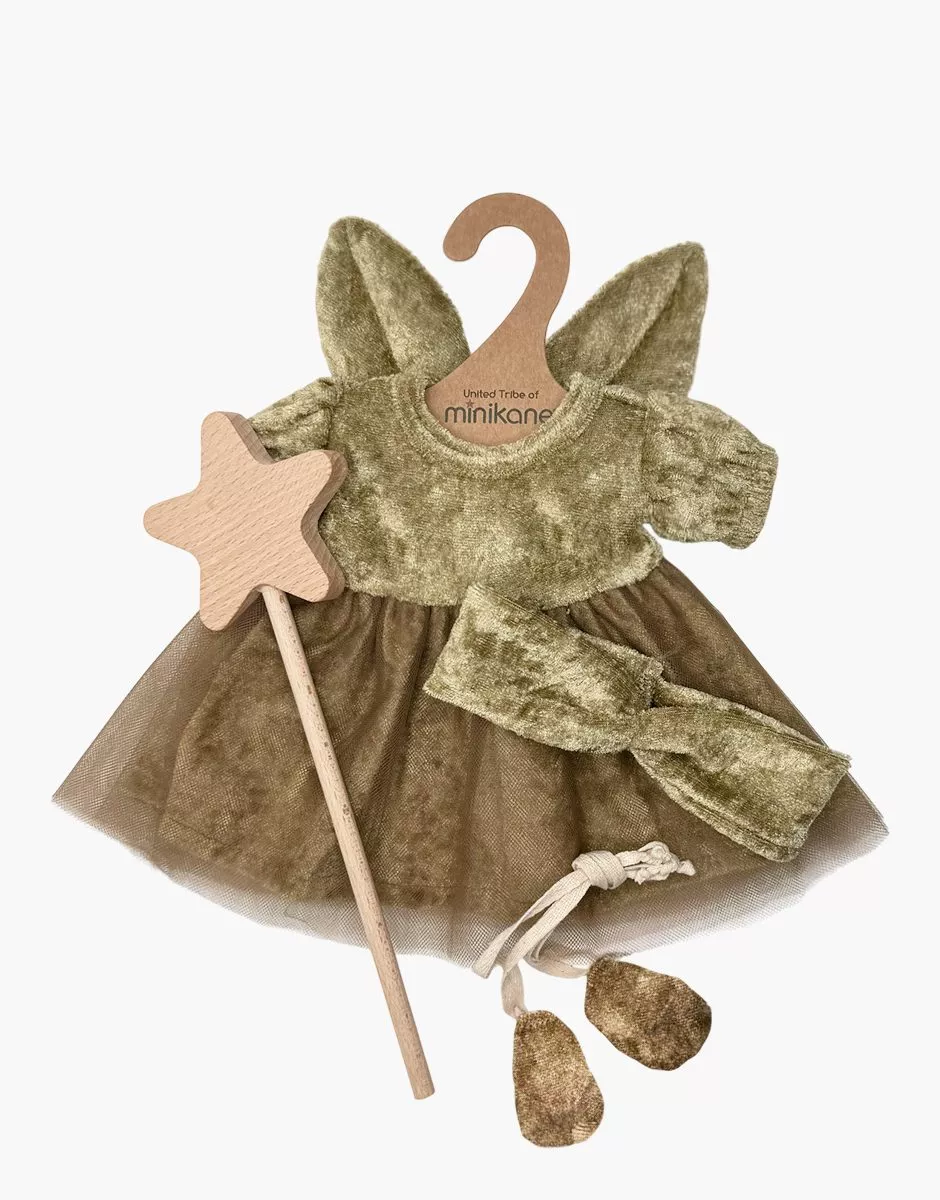 Déguisement Fée des Bois et ses accessoires pour poupées Minikane Gordis 34 & 37cm. Vendu sans poupée. L’ensemble comprend : un tutu Rosella « Fée des Bois » en jersey panne de velours marron avec tulle marron et ailes de papillon attachées au dos. un headband croisé en panne de velours marron. une paire de chaussons ballerine en panne de velours marron, une baguette magique en bois. un cintre en carton. Design, développement & confection MADE IN FRANCE. Design, development & tailoring made in France. Exclusive fabric patterns.