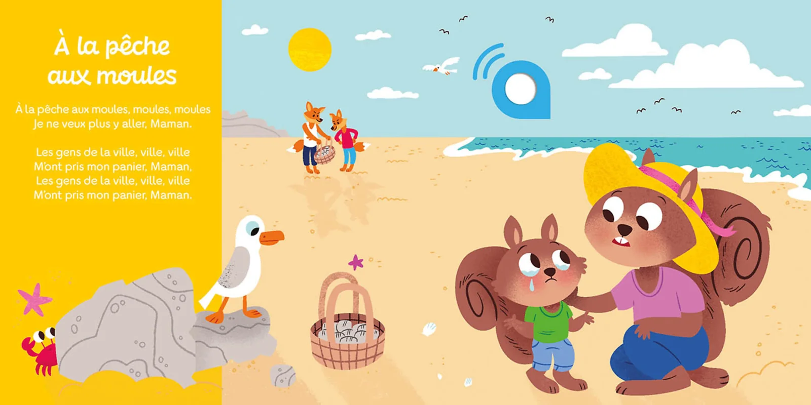 Tout d’abord, ce livre sonore de comptines accompagne les enfants dans leurs premiers apprentissages musicaux. Grâce à des comptines courtes, simples et faciles à mémoriser, il est parfaitement adapté aux usages en crèche comme en école maternelle. Ainsi, l’enfant découvre le plaisir d’écouter, de chanter et de répéter les chansons qu’il entend au quotidien.