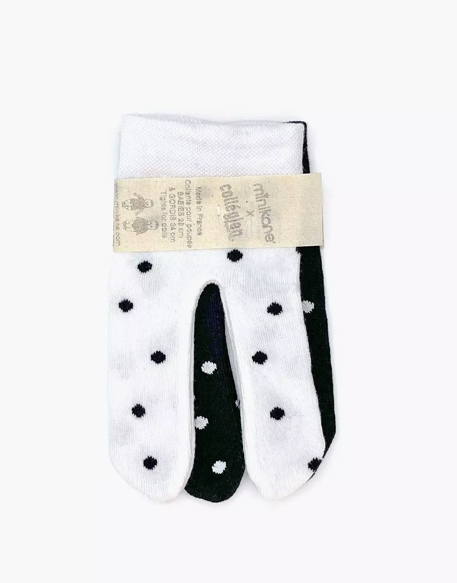 Lot de 2 collants blanc neige à pois noirs / noir charbon à pois blancs