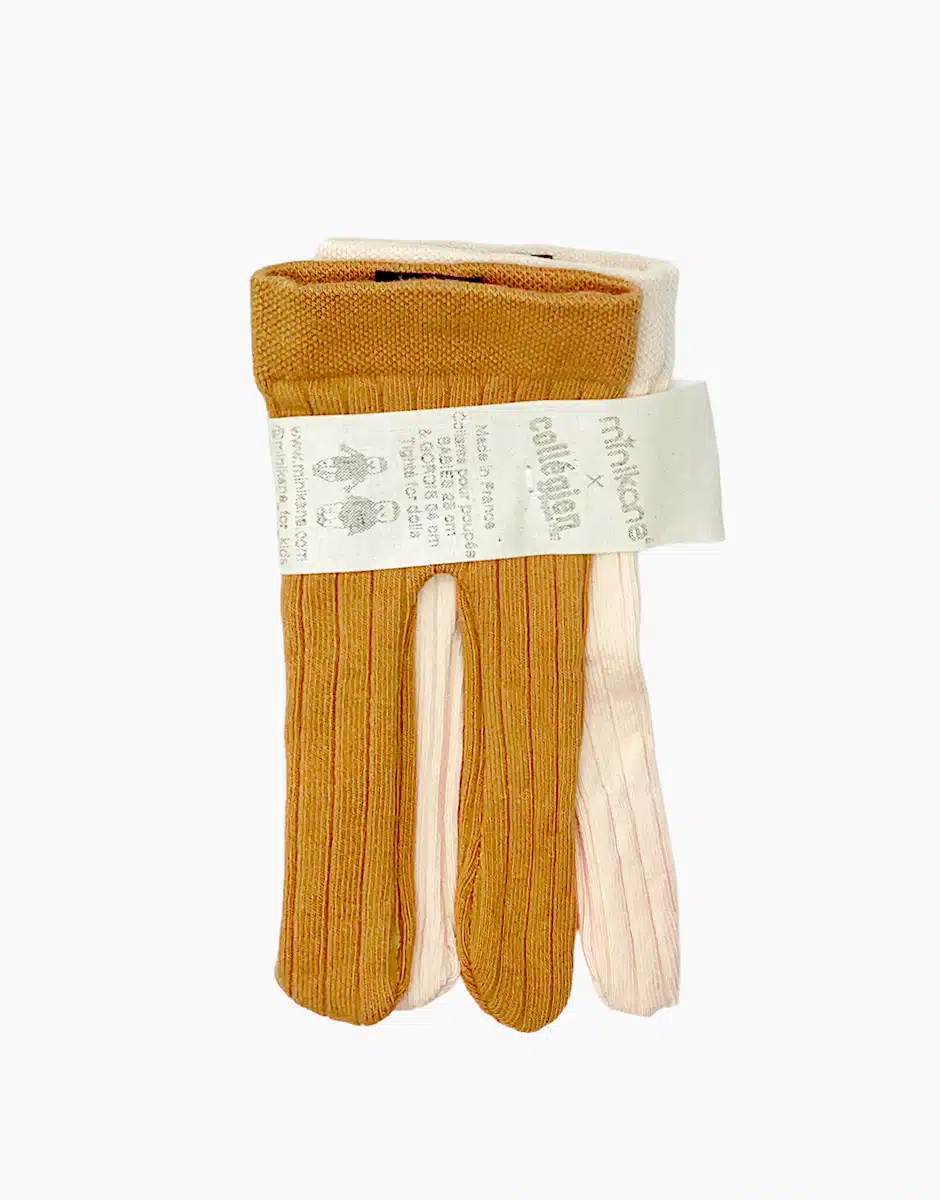 Lot de 2 paires de collants en coton Collégien pour poupées Minikane. Design, développement & confection made in France par Collégien. Design, development & tailoring made in France by Collégien.