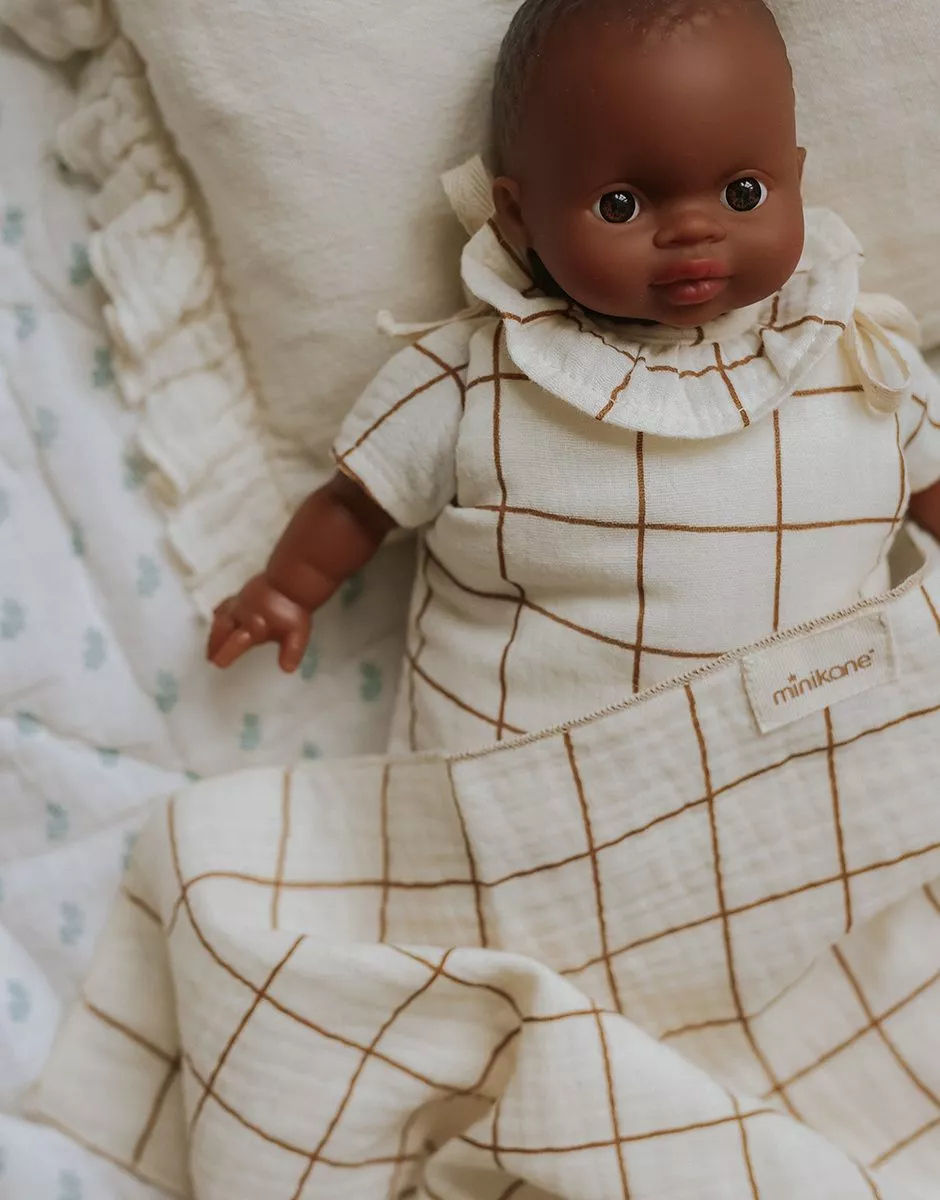 Lot de 2 langes en gaze de coton pour poupées et poupons Minikane Gordis 34 & 37cm. Design, développement & confection MADE IN FRANCE. Design, development & tailoring made in France.