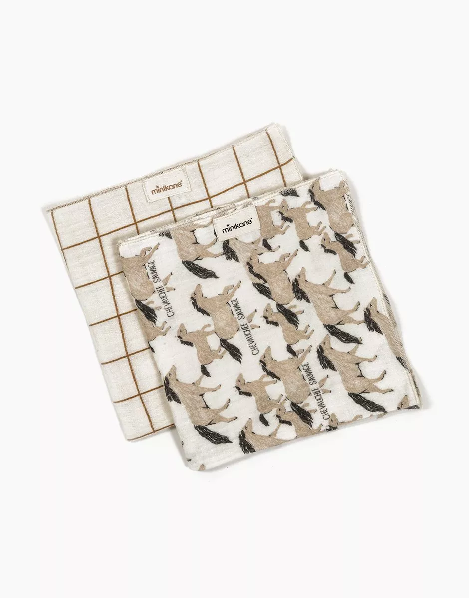Lot de 2 langes en gaze de coton carreaux Aldo / Chevauchée sauvage