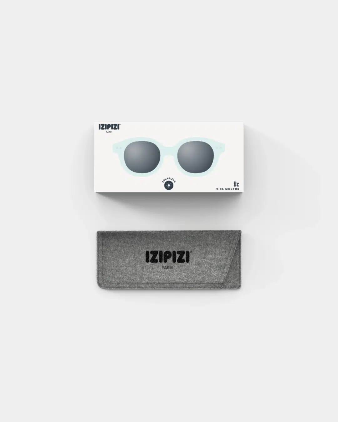 Lunettes de soleil de 0 à 9 mois (tour de tête 34-41 cm). Forme #c: carrée, rétro, espiègle – Verres polarisés – Protection 100% UV (UV 400) catégorie 3 – Modèle mixte et universel – Pochette de rangement et cordon en silicone inclus dans la boîte.