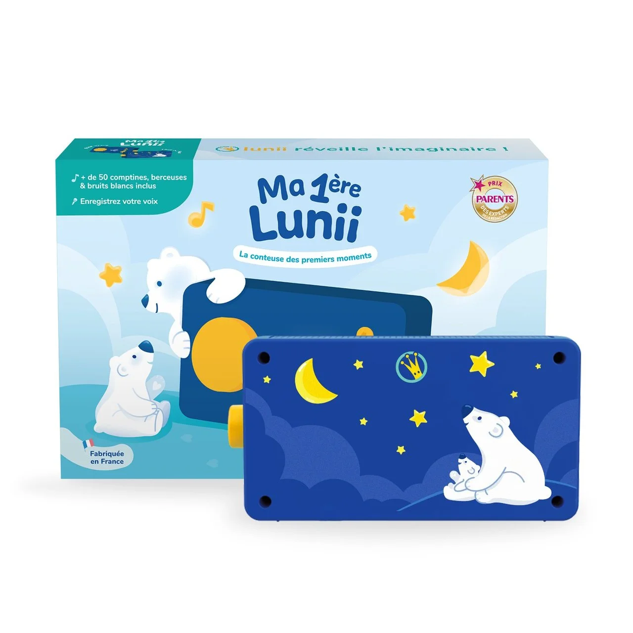 Ma 1ère Lunii est une conteuse sans écran conçue pour les tout-petits : +50 comptines, berceuses et bruits blancs, contenu évolutif jusqu’à 8 ans, fabrication française et autonomie de 8h. Parfaite pour l’éveil et l’endormissement.