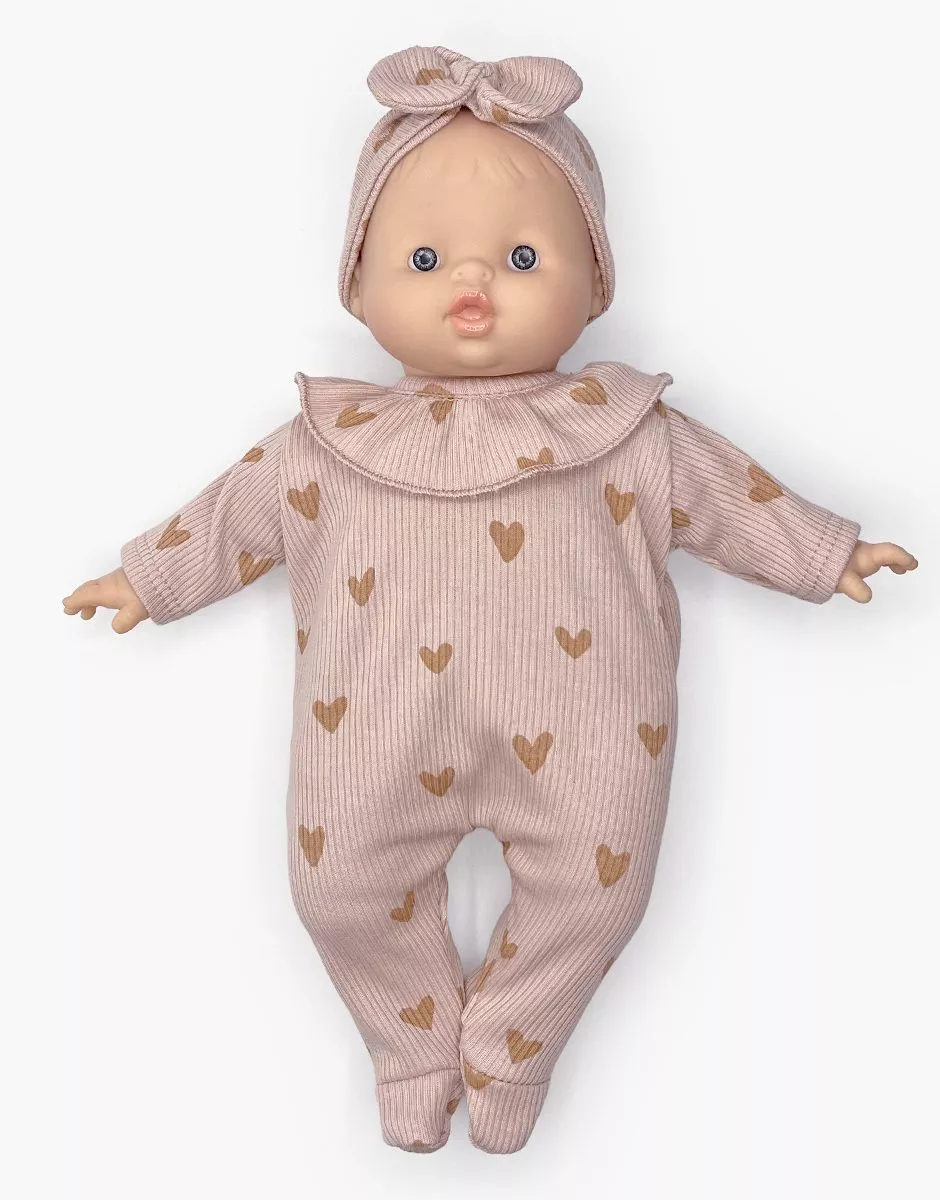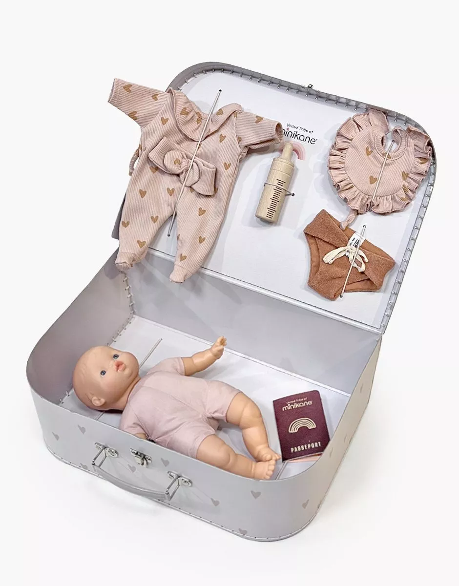 Ma Valise d’antan “Kit de Naissance” mixte Petits coeurs beiges pour poupées Babies 28cm