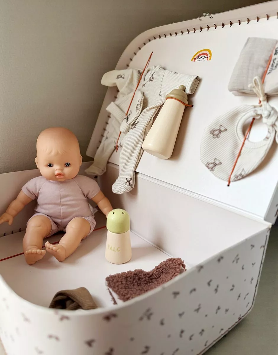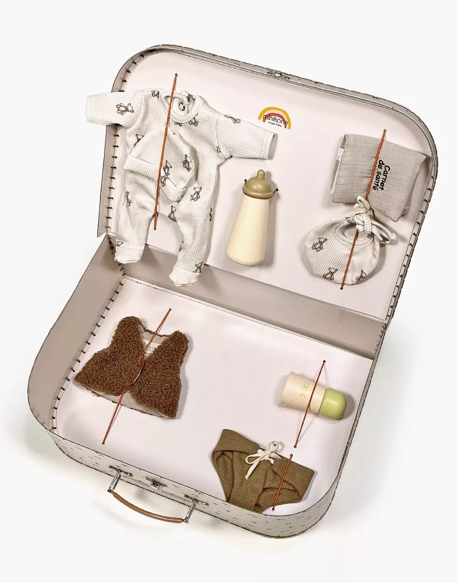 Ma Valise d’antan “Kit de Naissance” Petits oursons pour poupées Babies 28cm