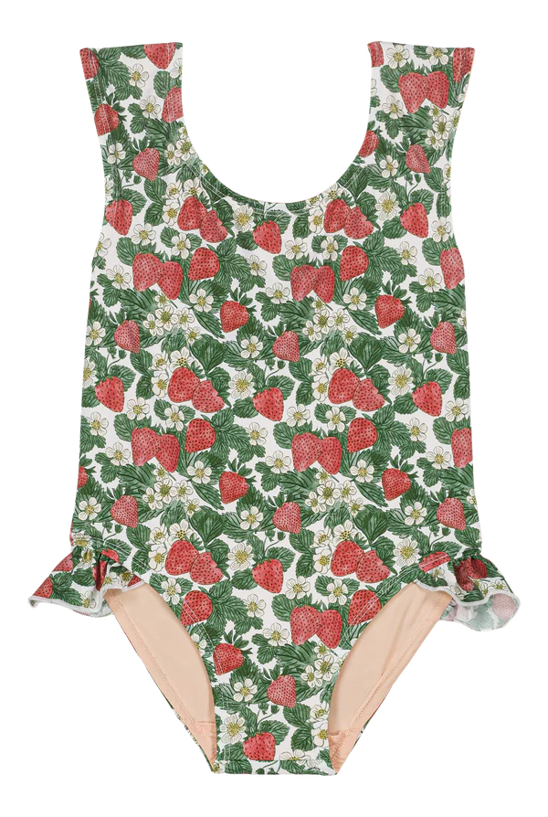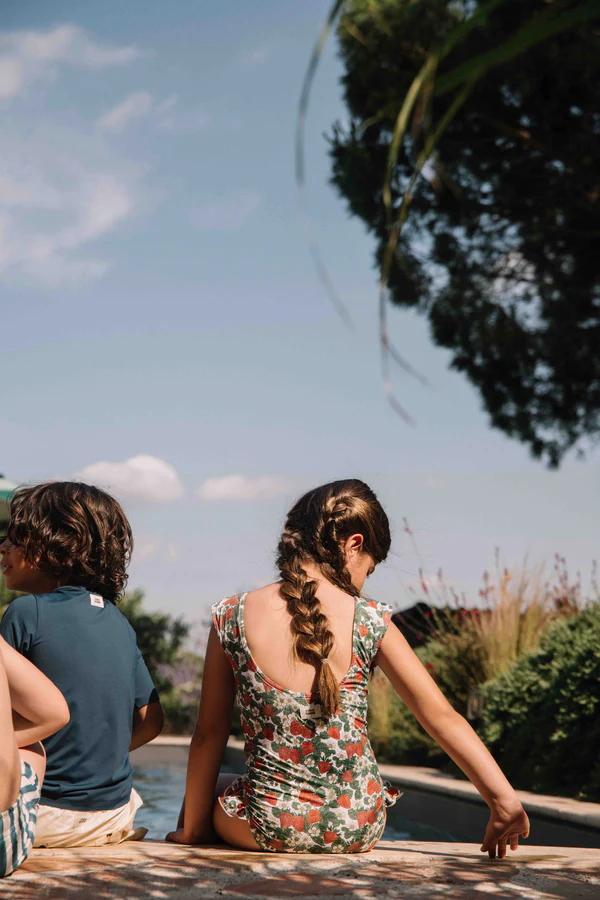 Le maillot de bain Ballerina fraises de Studio Bohème protège efficacement la peau fragile des enfants tout en offrant un style doux et estival. Son imprimé fraises, joyeux et fruité, séduit les petits comme les grands. Grâce à sa matière innovante, ce maillot une pièce bloque jusqu’à 98 % des rayons UV. Certifié UPF50+, il est idéal pour jouer au soleil en toute sécurité.
