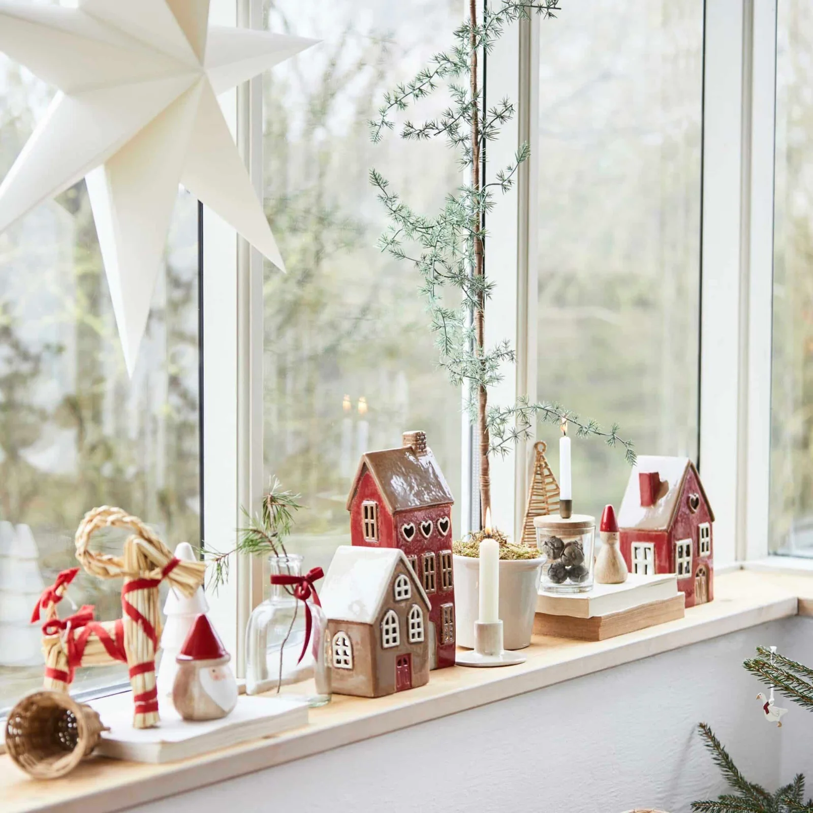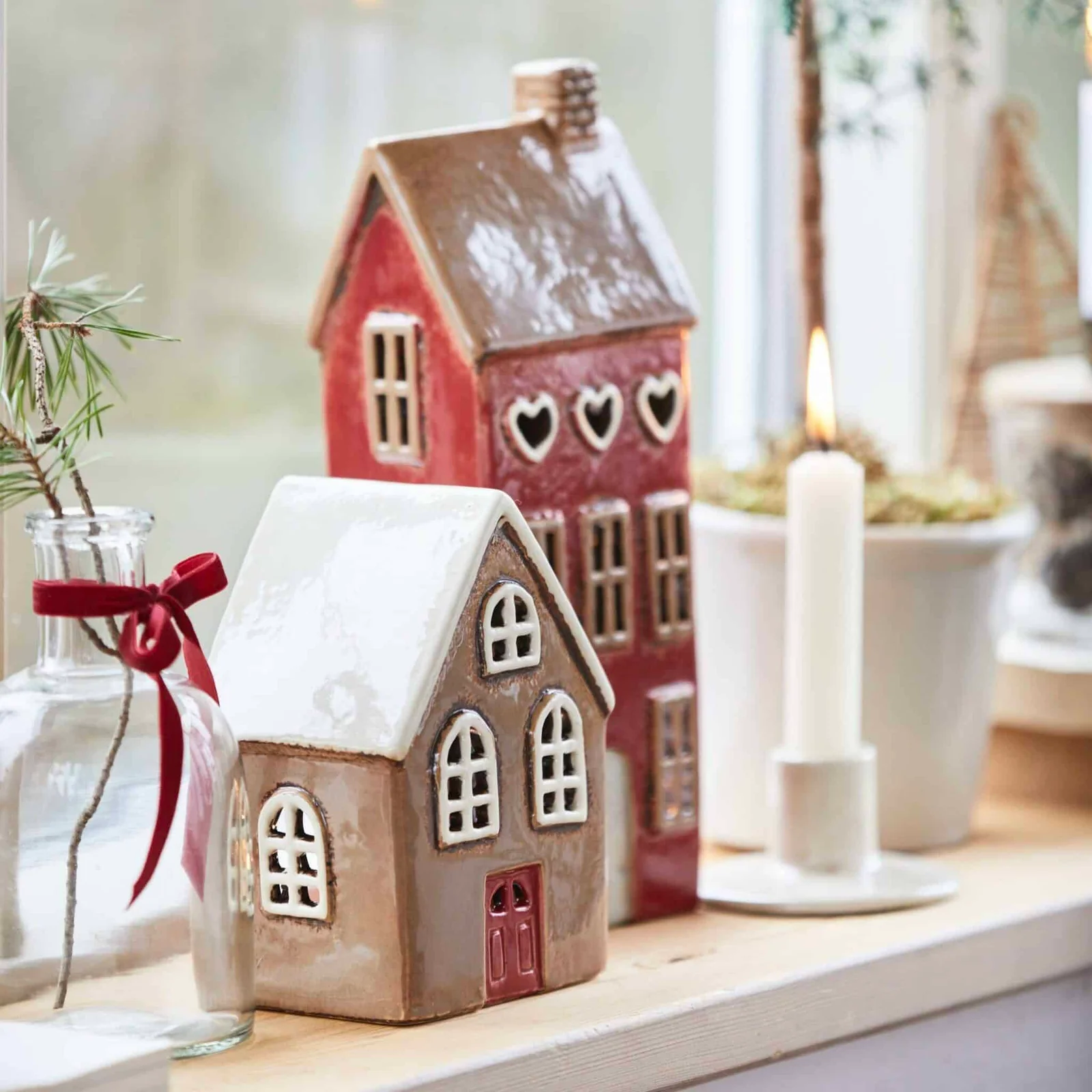 Maison Bougeoir Stillenat Porte Rouge, IB Laursen. Maison Ocre en céramique aux détails réalistes, avec une porte rouge. Elle est très décorative sur une table de fête mais également en association avec les autres maisons de la marque IB Laursen pour créer un village magique et coloré.