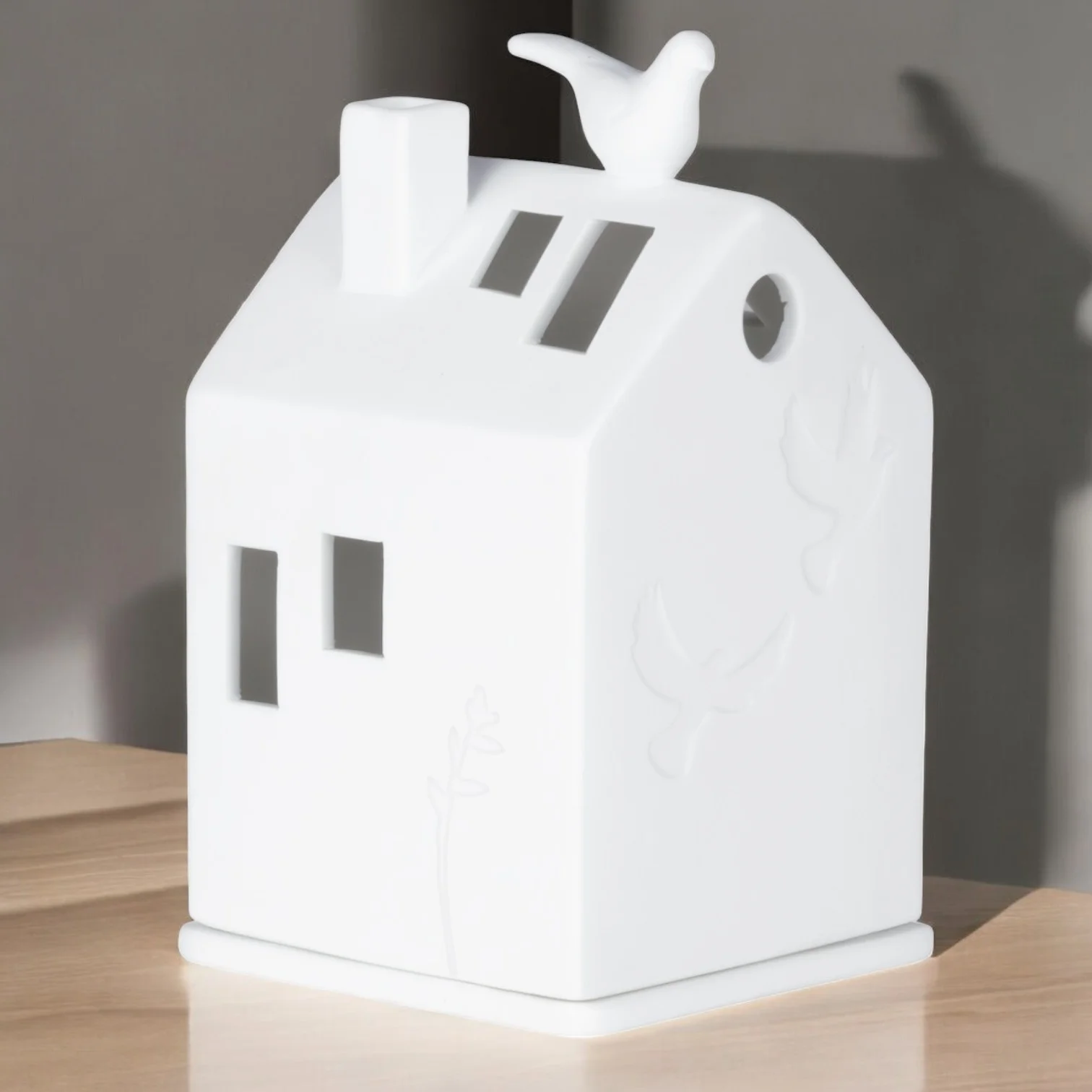 - Design épuré et charmant de maison avec silhouette de colombe.
