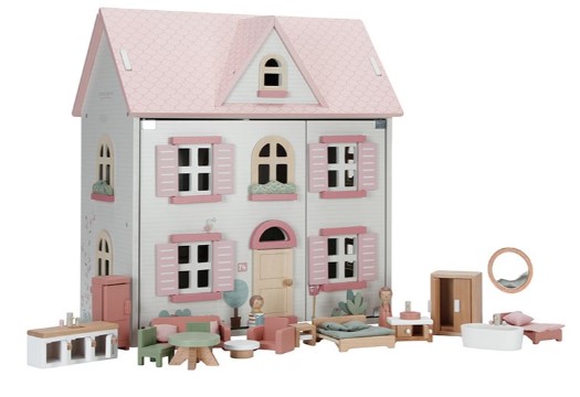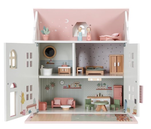 La maison de poupée en bois de Little Dutch est l’endroit de jeu idéal pour permettre aux enfants de laisser libre cours à leur créativité. Cette belle maison est de couleur blanche avec un toit rose et a des volets en bois qui peuvent être ouverts et fermés. Le toit peut également être ouvert pour plus de plaisir de jeu, et une partie du toit peut être transformée en jardin. L’intérieur de la maison est très détaillé et comporte de belles illustrations, à l’intérieur comme à l’extérieur. Jim et Rosa, sont inclus avec la maison de poupée afin que les…