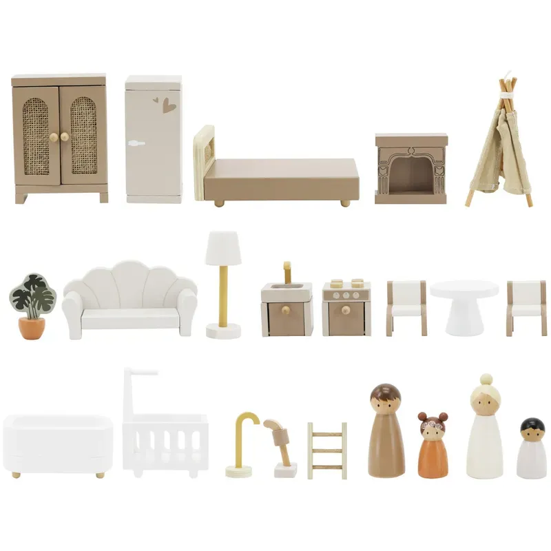 Grâce à ses deux étages spacieux, cette maison en bois propose un univers complet où chaque pièce prend vie. Les enfants peuvent aménager les espaces à leur guise avec le mobilier inclus : un lit, un canapé, une table, des chaises et même une baignoire. Ils s’amusent à déplacer les meubles, à inventer des histoires et à créer leur propre monde miniature.