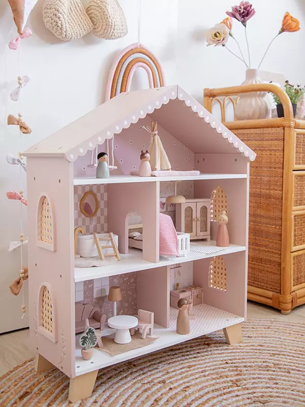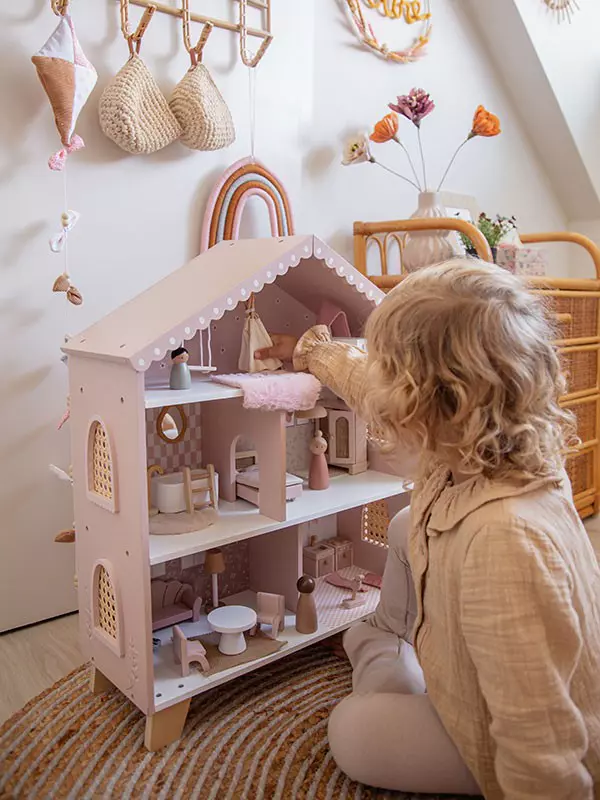 La Maison de poupées Rose Label Label allie beauté, durabilité et imagination. Grâce à elle, chaque enfant crée son propre univers, rempli d’histoires douces et de rêves à partager.