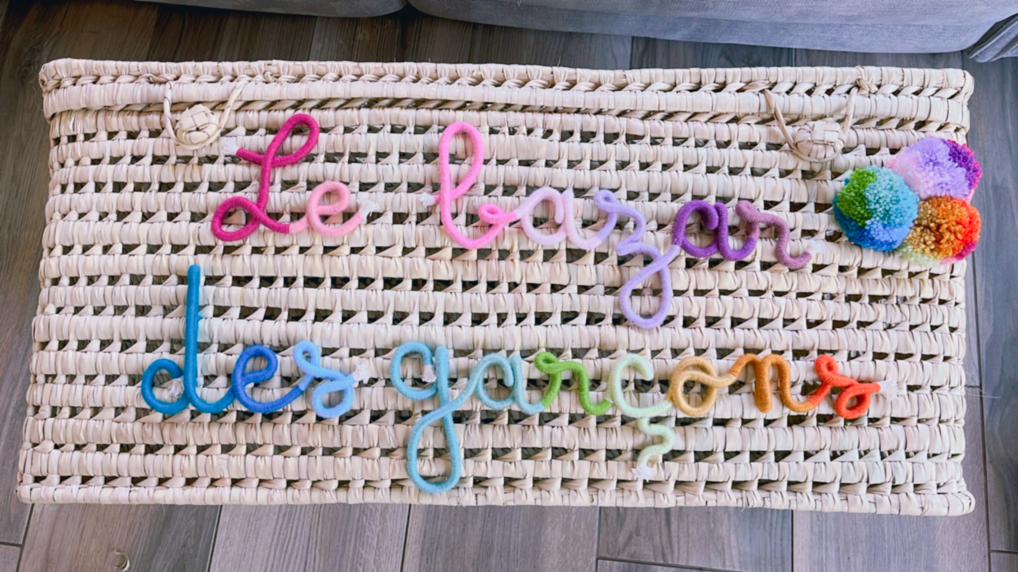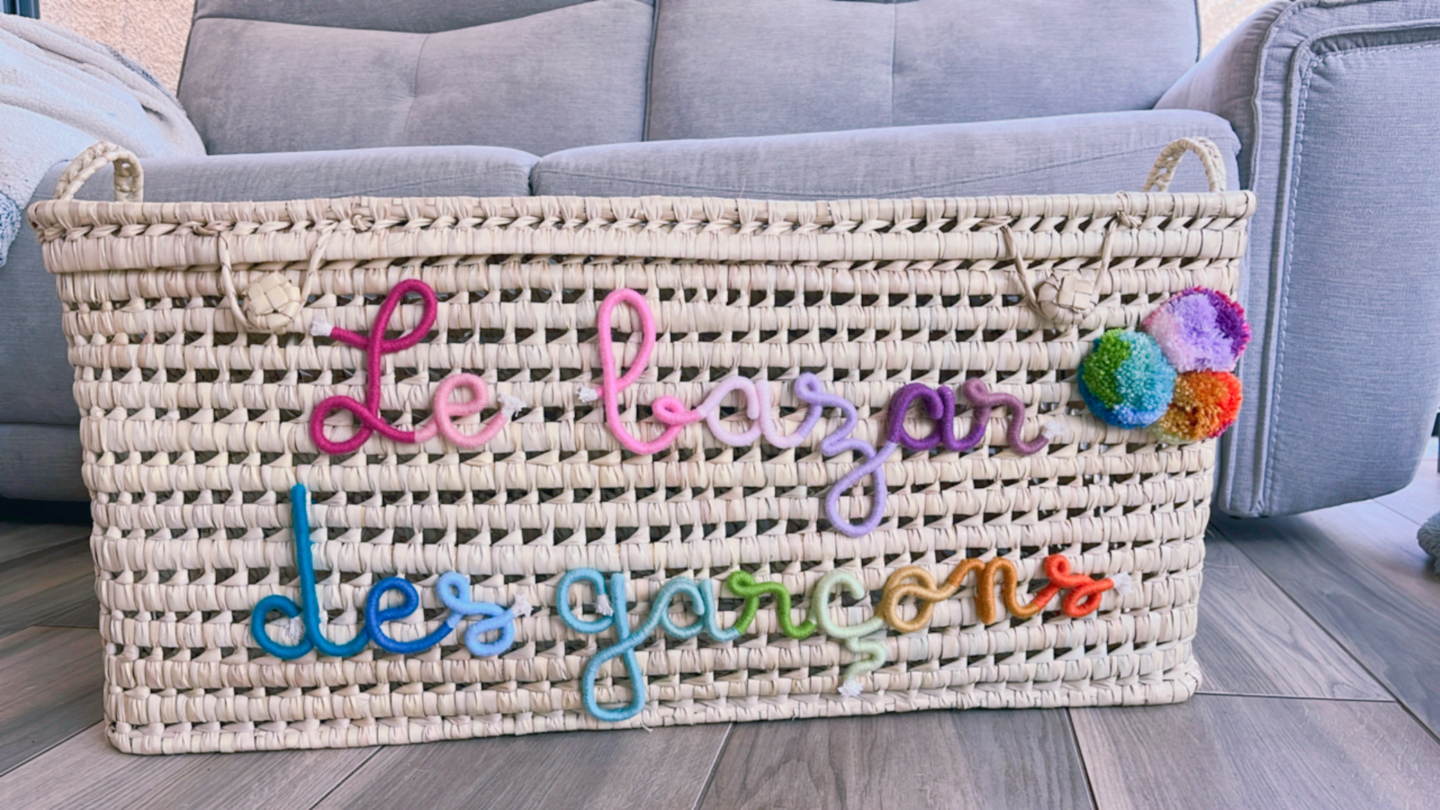 * Panier à jouets modèle haut tressé anses naturelles avec 3 pompons