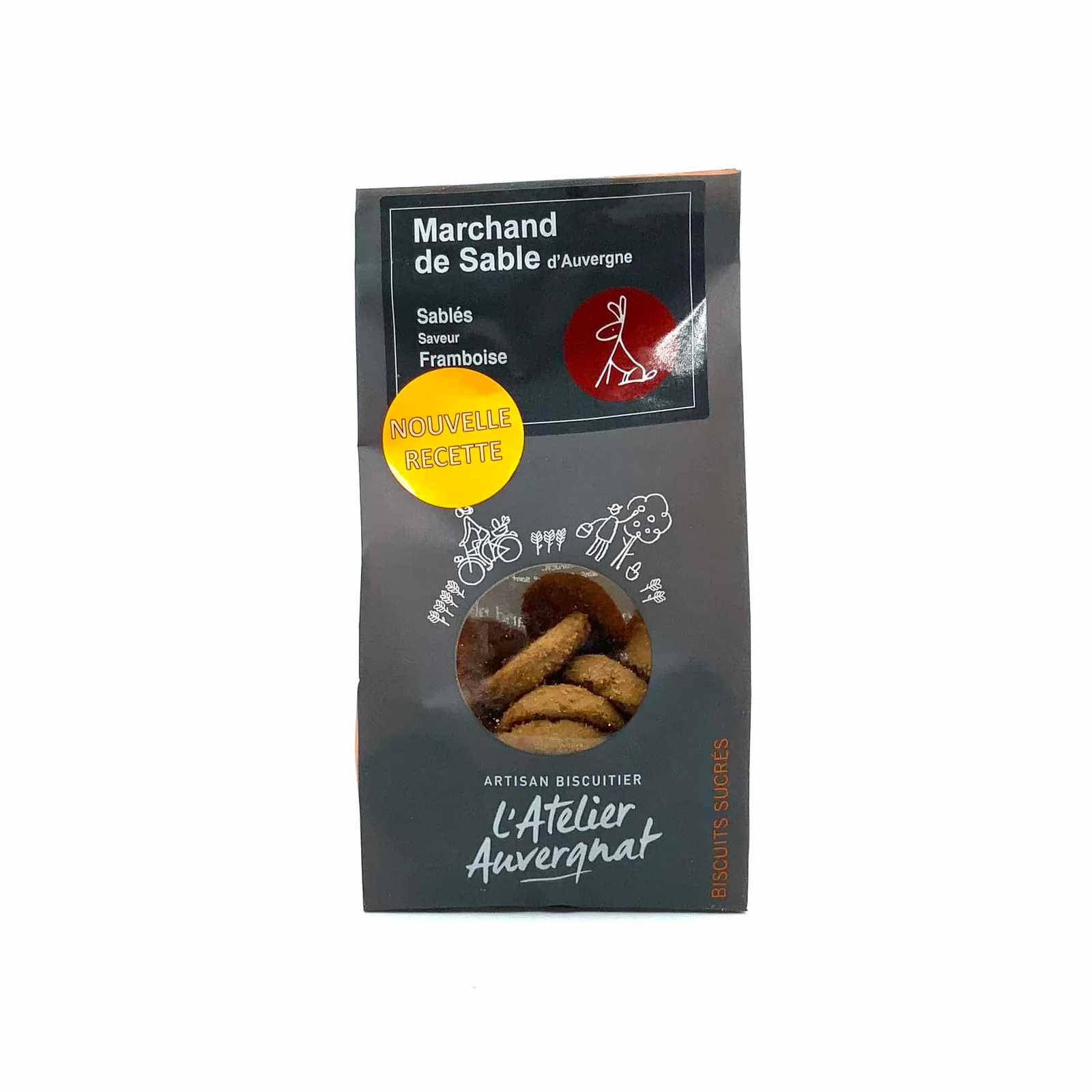 Marchand de Sable Framboise140g, L’Atelier Auvergnat. Biscuits saveur framboise fabriqués en Auvergne.