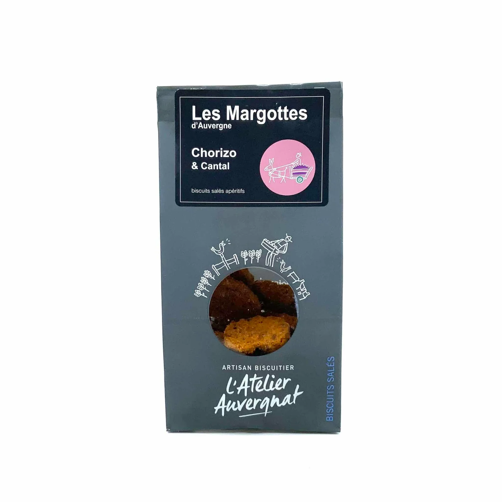 Margottes d’Auvergne, Cantal et Chorizo, 120g, L’Atelier Auvergnat. Biscuits salés Apéritif Cantal et Chorizo, fabriqués en Auvergne.