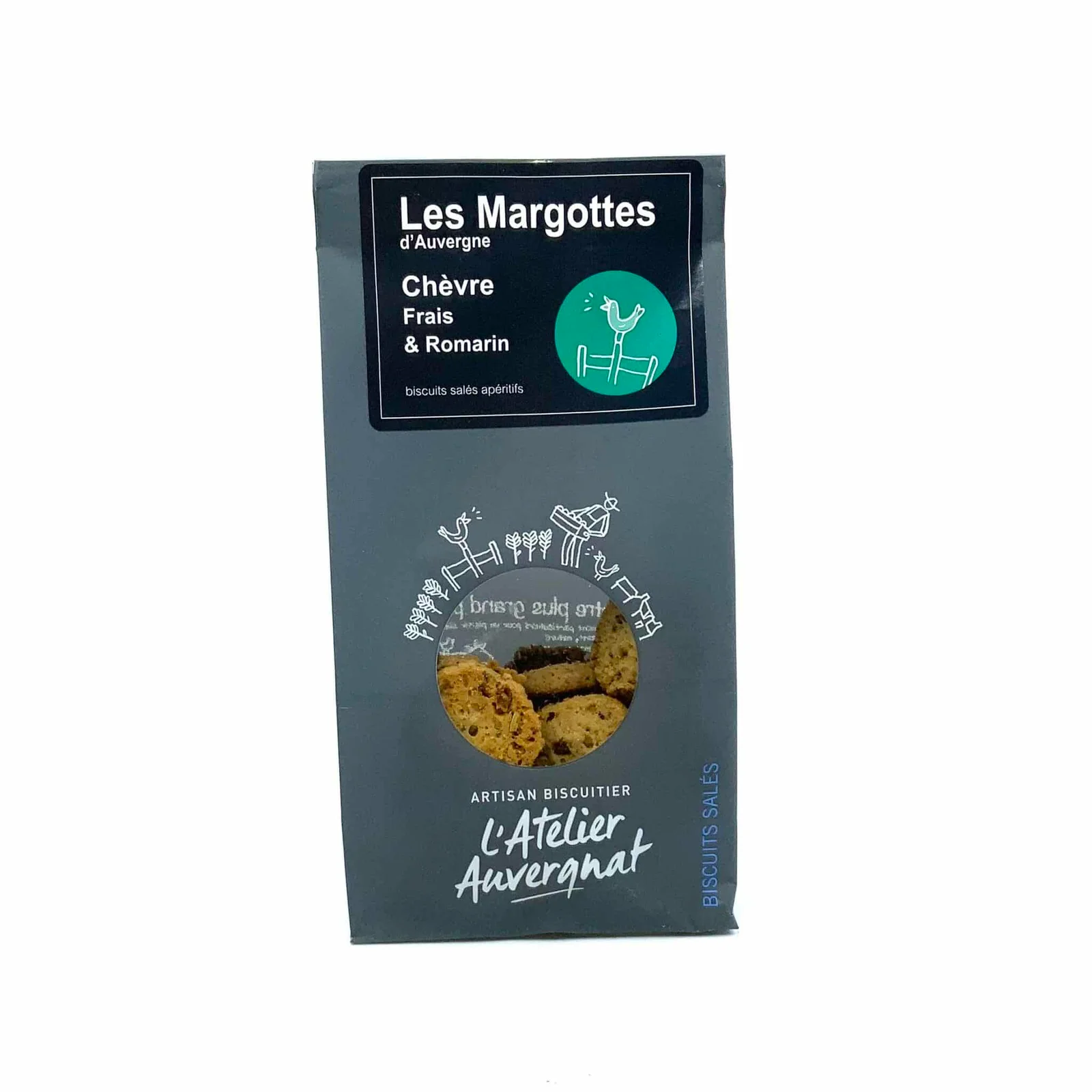 Margottes d’Auvergne, Chèvre Frais et Romarin, 120g, L’Atelier Auvergnat. Biscuits salés Apéritif Croustillants Chèvre Frais et Romarin, fabriqués en Auvergne.