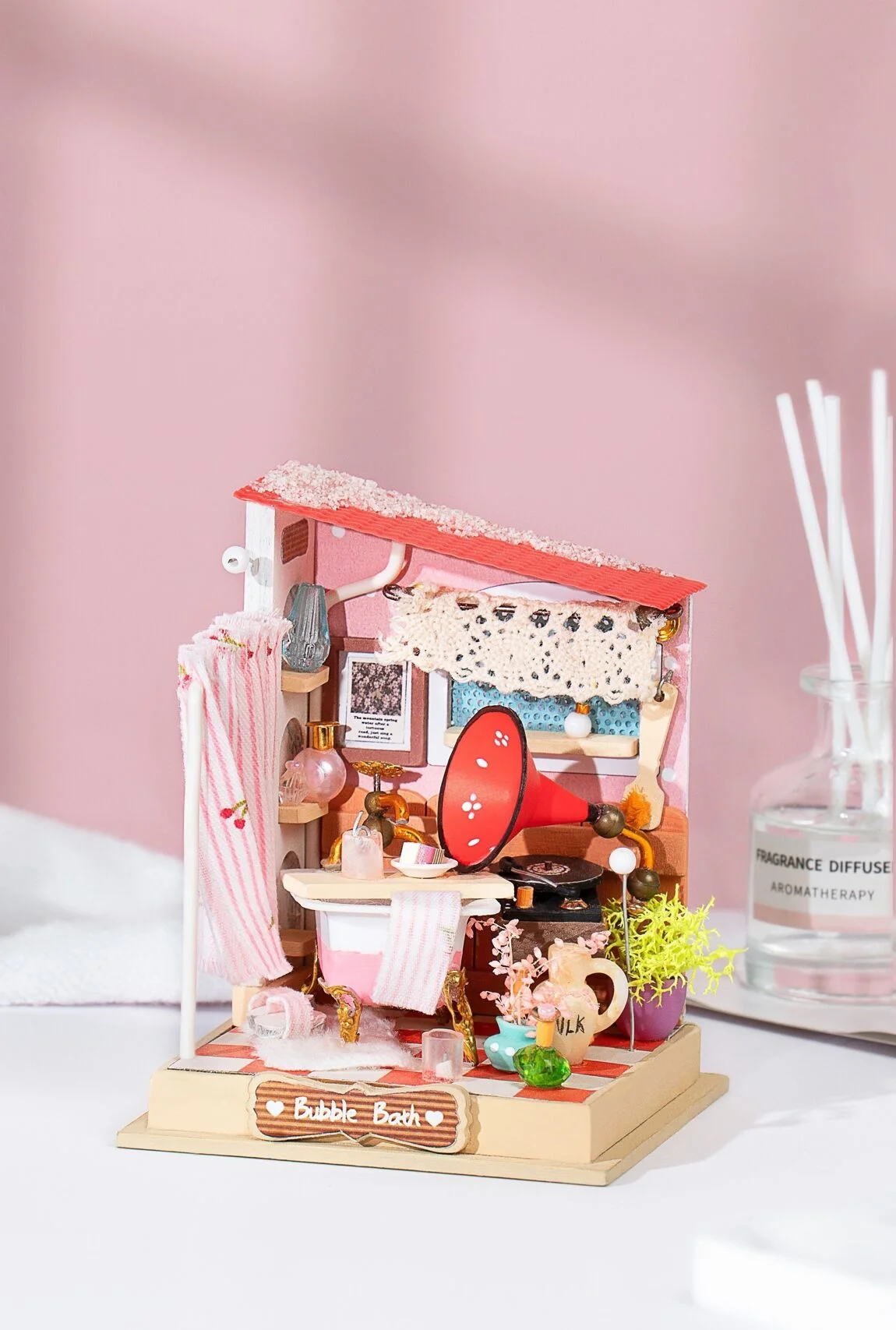 Mini Bathroom, ROBOTIME Découvrez le Mini Bathroom de ROBOTIME, une salle de bain miniature à assembler soi-même. Avec des détails réalistes et des pièces finement travaillées, ce modèle en bois ajoutera une touche charmante à votre collection de dioramas.