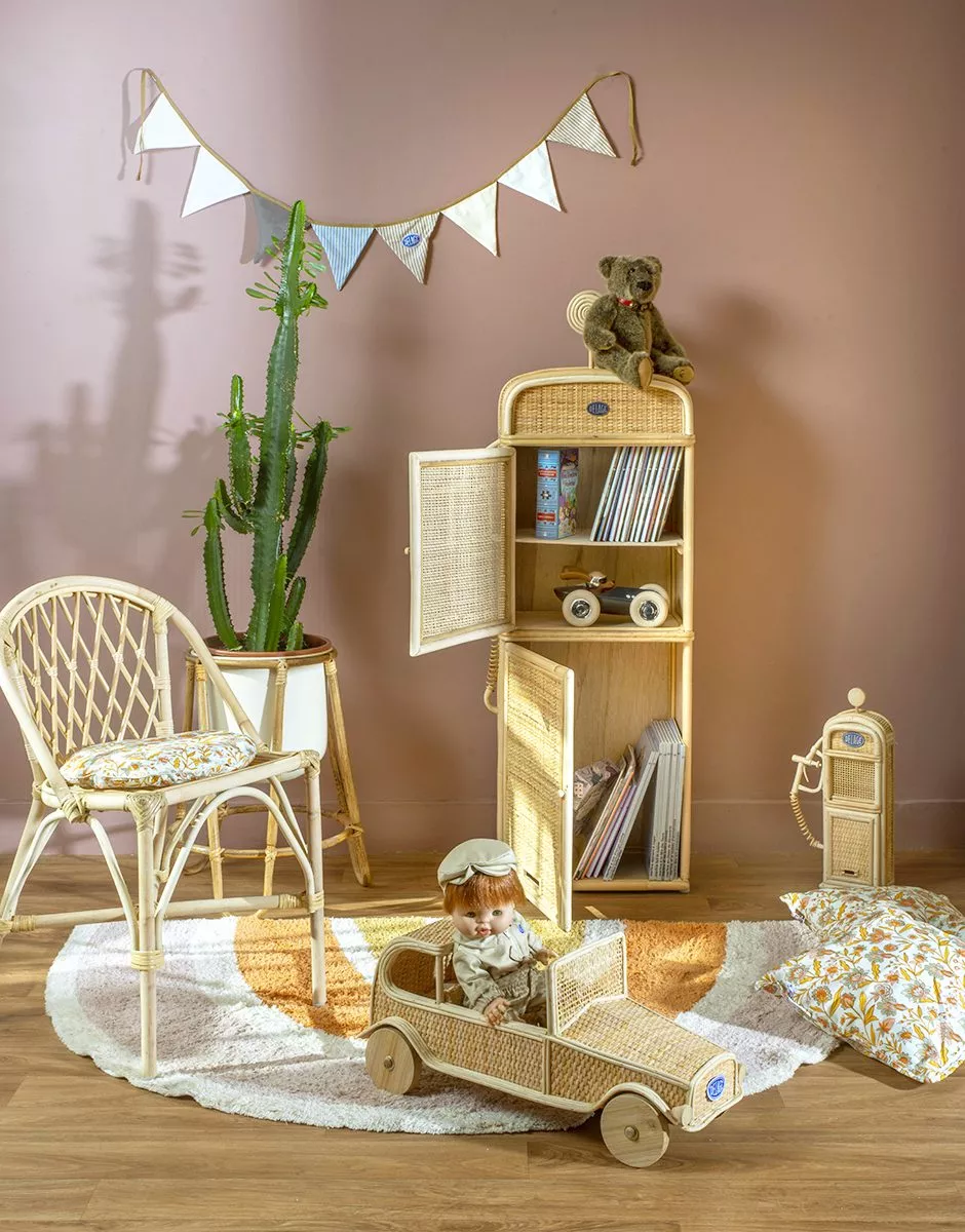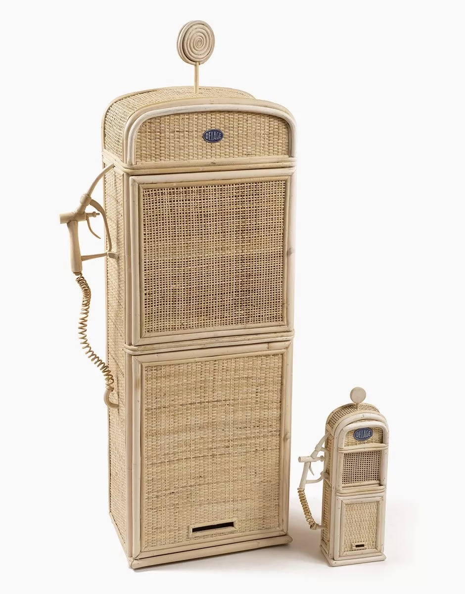 Collection « Jakarta », en bambou & rotin. Jouet pompe à essence « Pare-pare » pour enfants avec buse et intérieur avec étagères pour rangements. Dimensions : Largeur 35cm x Hauteur 95cm (107 cm avec l’emblème rond) x Profondeur 22cm. Design & Développement : Made in France | Fabrication : Made in Indonesia. Des variations peuvent survenir en raison des matériaux utilisés.